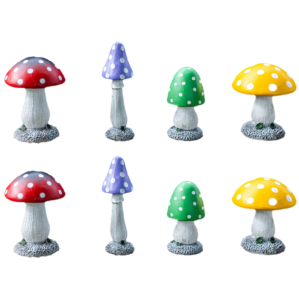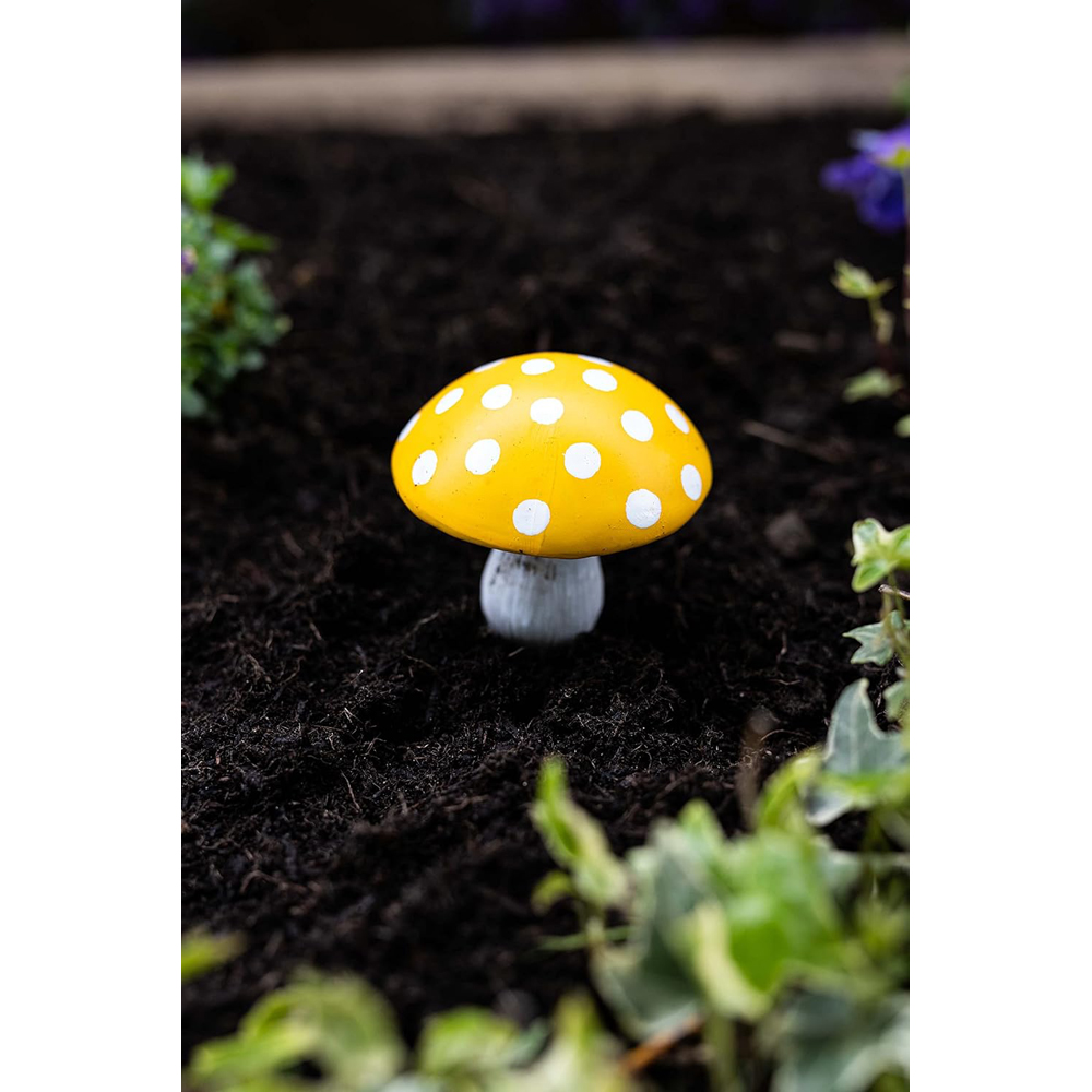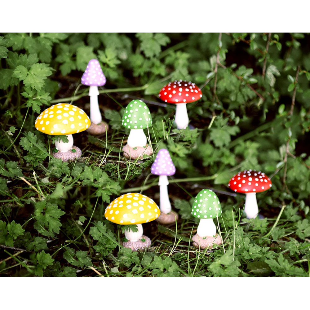 These outdoor mushroom statues are made from poly resin and hand painted, which makes them waterproof and frost resistant; it gives you longlisting service. These fairy garden ornaments are strong, durable, and can be used as garden statue figurines over the years. This set of 8 outdoor ornaments for the garden multicoloured mushroom and toadstool look amazing in your fairy garden or next to your garden gnomes. These fairy garden accessories create a welcome addition and magical adventures for your visitors. This fairy garden decorations outdoor statue is fully waterproof and frost resistant which protects your statue from all bad weather. They will look great come rain or shine, this resin ornament will withstand even the worst weather conditions. These ecofriendly garden statues and sculptures bring your garden to life by placing the mushrooms in lawn grass areas, around trees and in flower beds. You can also be used around the home or office to add decoration and colour to miniature gardens or indoor plants. Our toadstools are the perfect gift for any garden lovers and the ideal gift for a wedding, Christmas or birthday gift. The mushroom garden ornaments are the perfect size for adding to your flowerbeds or garden, the mushrooms are all Varied sizes measuring at Approximately Yellow (10cm H x 7.2cm L x 7.2cm W approx.) Green (9cm H x 8cm L x 8cm W) Red Small (9cm H x 4.8cm L x 4.8cm W) Red Tall (12cm H x 4cm L x 4cm W) Yellow with dimensions: H10 x L7.2 x W7.2cm, Green: H9 x L8 x W8, Red Small: H9 x L4.8 x W4.8cm, Red Tall: H12 x L4 x W4cm. Resin. Floor Mount