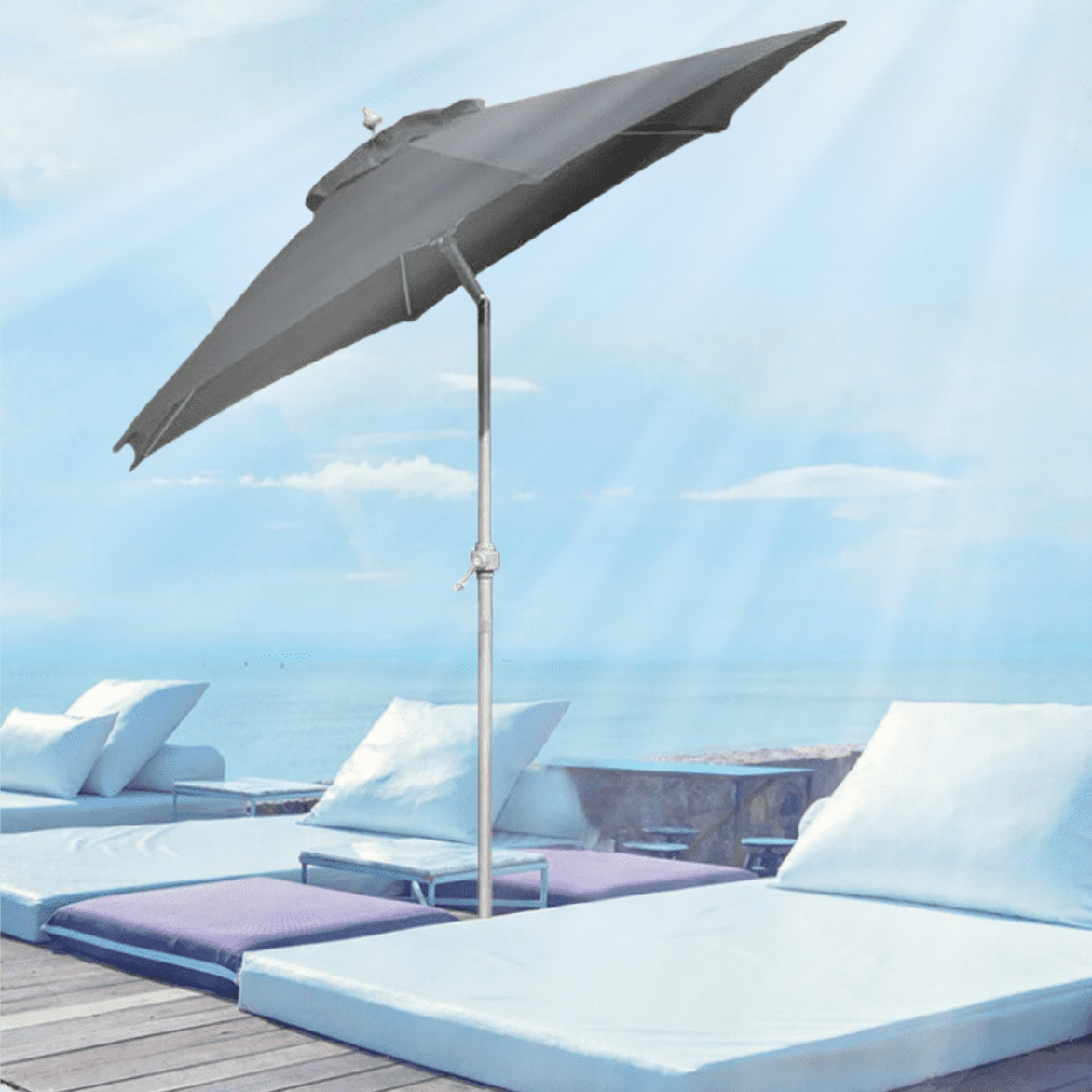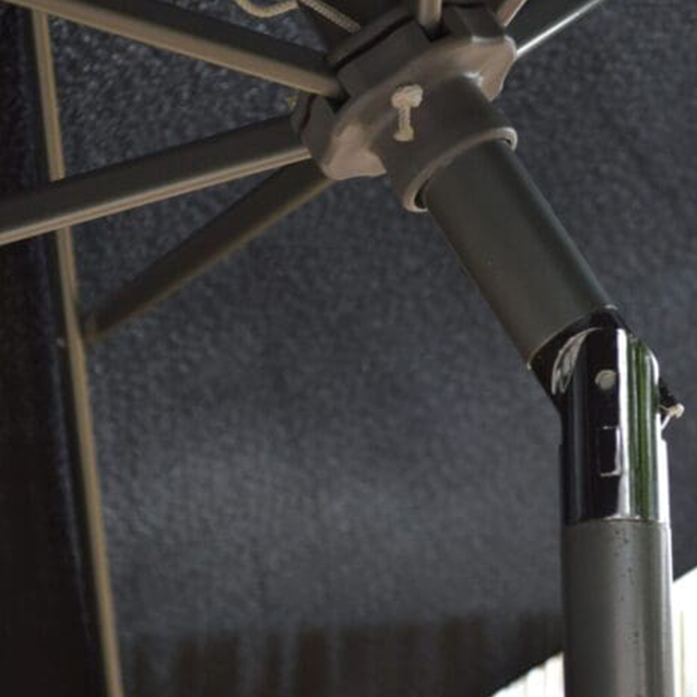 Introducing Marco Paul Black high-quality garden umbrella Parasol 2m, crafted with a durable polyester canopy boasting a 160g/m2 cover and supported by a robust frame of alloy steel and aluminium. Designed to provide comprehensive protection from the sun and light rain, this parasol features an air vent to prevent wind uplift and an easy-to-use aluminium crank handle for smooth operation. It comes with six steel ribs for added stability and a grey powder-coated aluminium pole for strength. The two-piece construction allows for easy assembly and storage. Perfect for enhancing your outdoor space with ample shade and sun protection, this versatile parasol is ideal for garden, patio or beach use.
