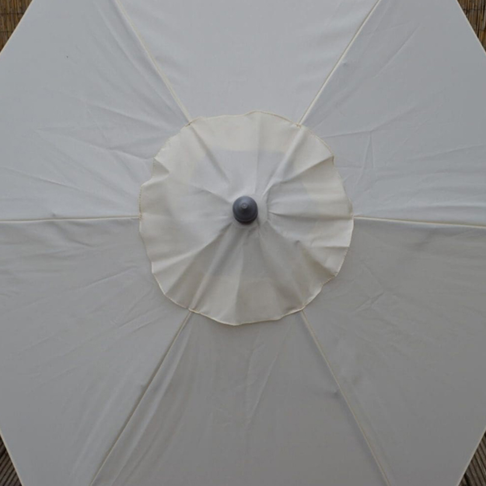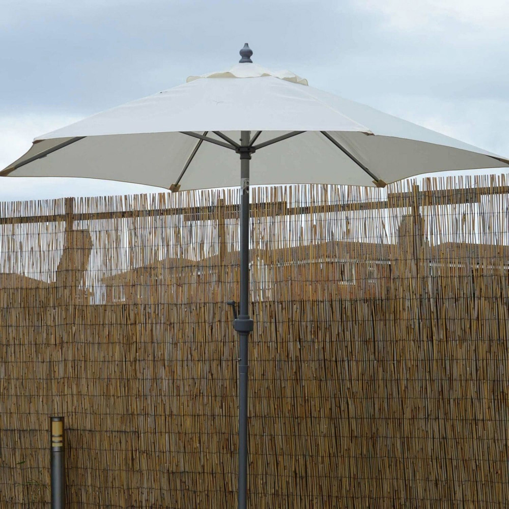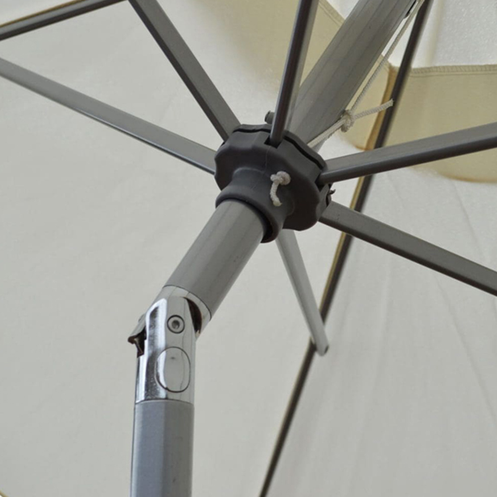 Introducing Marco Paul Cream high-quality garden umbrella Parasol 2m, crafted with a durable polyester canopy boasting a 160g/m2 cover and supported by a robust frame of alloy steel and aluminium. Designed to provide comprehensive protection from the sun and light rain, this parasol features an air vent to prevent wind uplift and an easy-to-use aluminium crank handle for smooth operation. It comes with six steel ribs for added stability and a grey powder-coated aluminium pole for strength. The two-piece construction allows for easy assembly and storage. Perfect for enhancing your outdoor space with ample shade and sun protection, this versatile parasol is ideal for garden, patio or beach use.