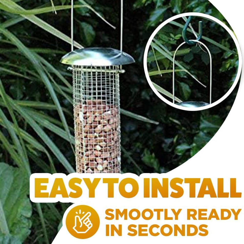 Get feeding your garden birds with this feeder! A deluxe metal feeding station that will have your garden birds coming back to for days on end! Fill with Seed, Nuts and Fat Balls and watch as Sparrows, Blue tits and all birds alike sworn your outdoor space to get a treat This easy to clean feeding station can be hung anywhere - whether it be trees, branches or even on a hanging bracket next to a window so you can get a full view. Made from hard wearing and durable metal, these feeders will last for many years to come giving you birds a lifetime of treats! A must have for any keen bird watcher.