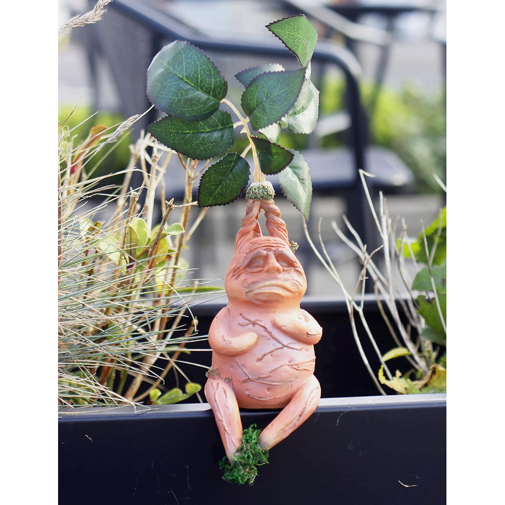 Mythical creatures garden ornament This premium wizard inspired garden ornament features mythical creatures, designed intricately to add fantasy and magic to your home garden. Chamber of Secrets garden features Bring the wizarding world to your home with this ornament. It is inspired by the Chamber of Secrets, mandrake, and other iconic elements from the Potter world. Ornaments in the flower bed These small, high-quality ornaments will transform your flower bed into a fantasy world. They feature mythical creatures, and elements from the wizarding world. Wizard themed garden features Immerse yourself in the wizarding world of Harry with these garden features. They are designed with mythical creatures and elements from the Chamber of Secrets. Premium Potter garden ornament This ornament, small in size but rich in details, is an essential feature for any Harry Potter fan's garden. It includes mythical creatures and elements from the Chamber of Secrets. 15cm. To top of leaves - 30cm approx. Figure - 18 x 7cm. resin. free standing