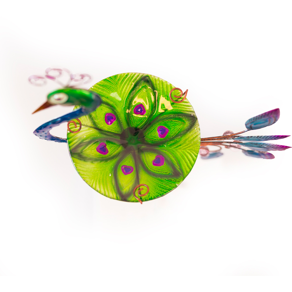 Introducing Marco Paul Peacock Glass Bird Bath, a colourful and dual-purpose addition to your garden. Crafted from metal and hand-painted glass, this vibrant peacock serves as both a bird bath and feeder. Simply place the stake in soft ground for easy setup, welcoming wild birds while adding aesthetic charm to your outdoor space.