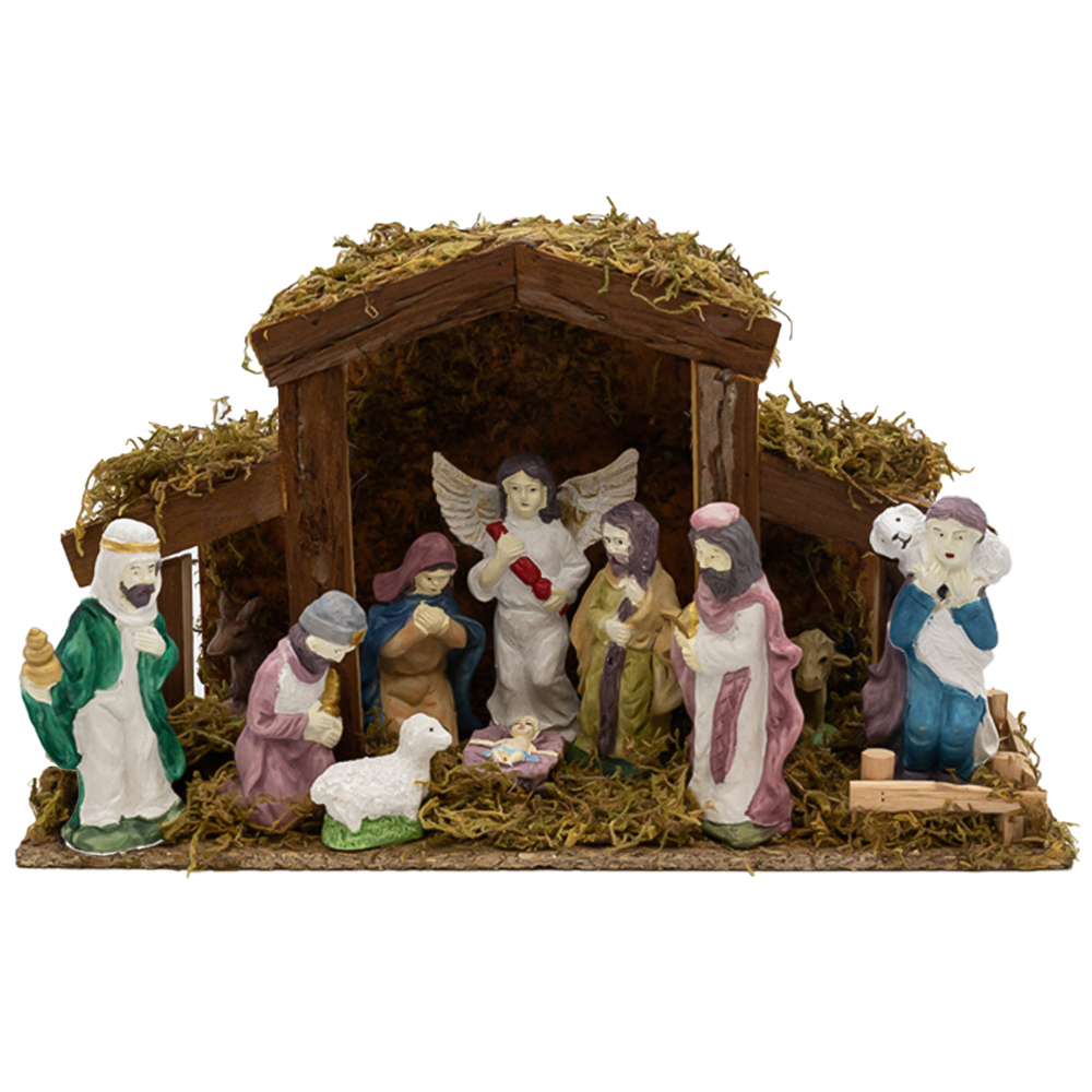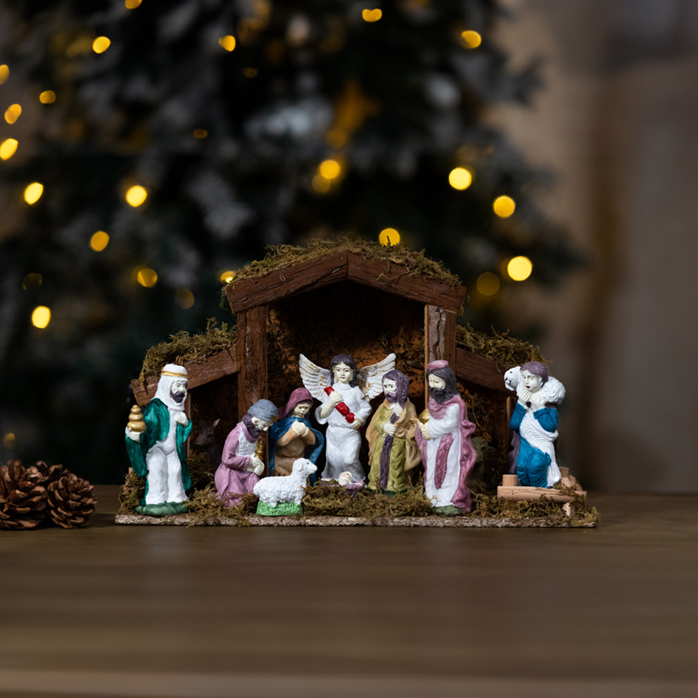 Get ready to bring the magic of Christmas into your home with the Marco Paul Resin Nativity Scene Christmas Decoration Ornament. This ornament is made from hard-wearing resin, ensuring it will last for many years to come and become a family favourite. The scene depicts Mary and Joseph in the stable after Jesus has just been born, with three wise men bringing gifts. The detailing on this decoration is truly impressive. This scene will look great among your other decorations, whether on the window sill, fireplace, mantel, or sideboard. Dimensions - H38 x W22 x L15 approx.