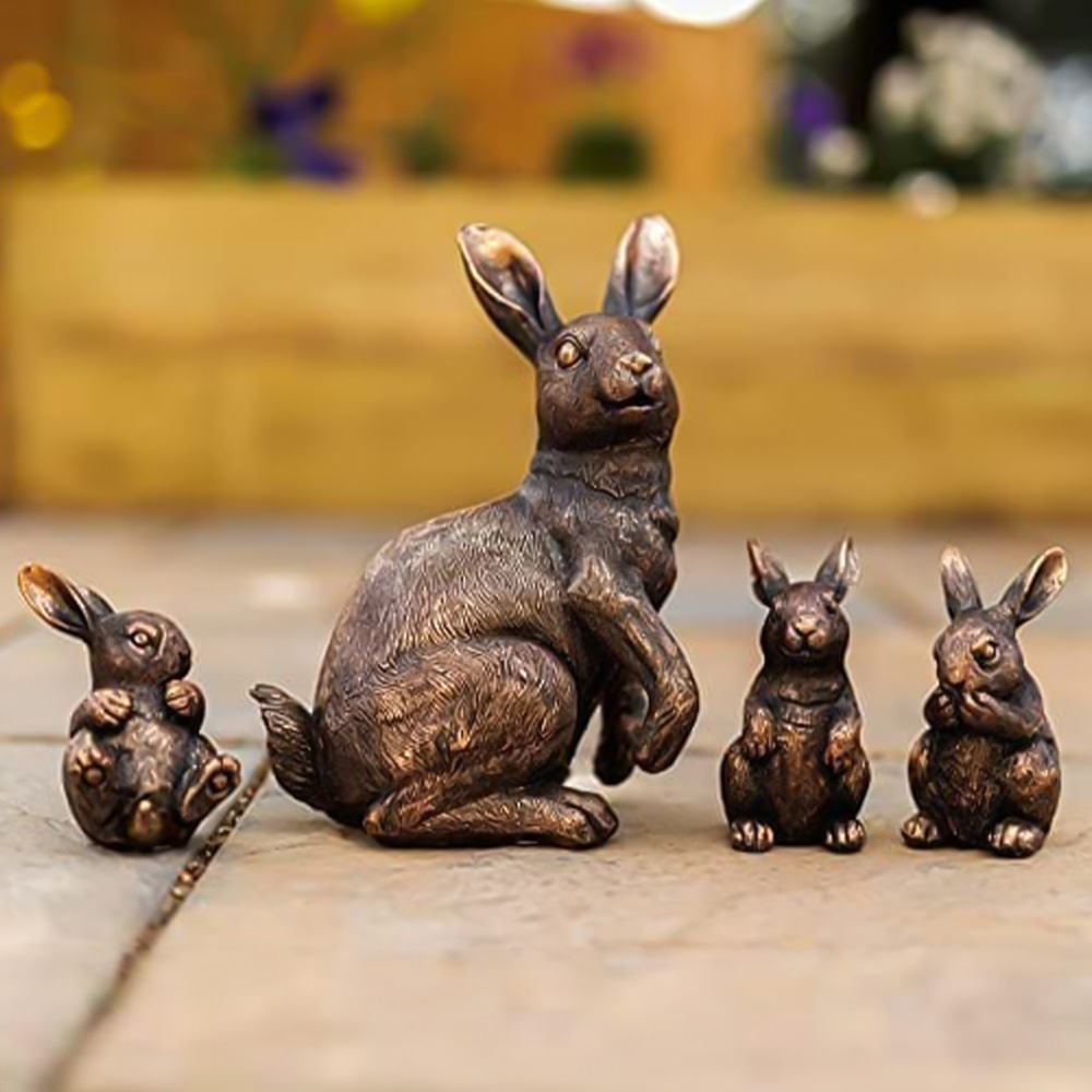 Transform your home or garden with this charming Marco Paul Set of Resin Rabbit Parent and Babies. Crafted from durable, weatherproof resin with a bronze effect finish, these delightful ornaments are suitable for both indoor and outdoor use. Whether rain or shine, they bring a playful and stylish addition to any area, promising durability and charm wherever they're displayed.