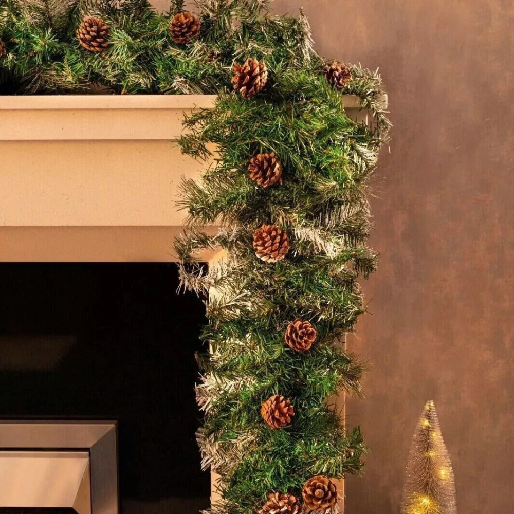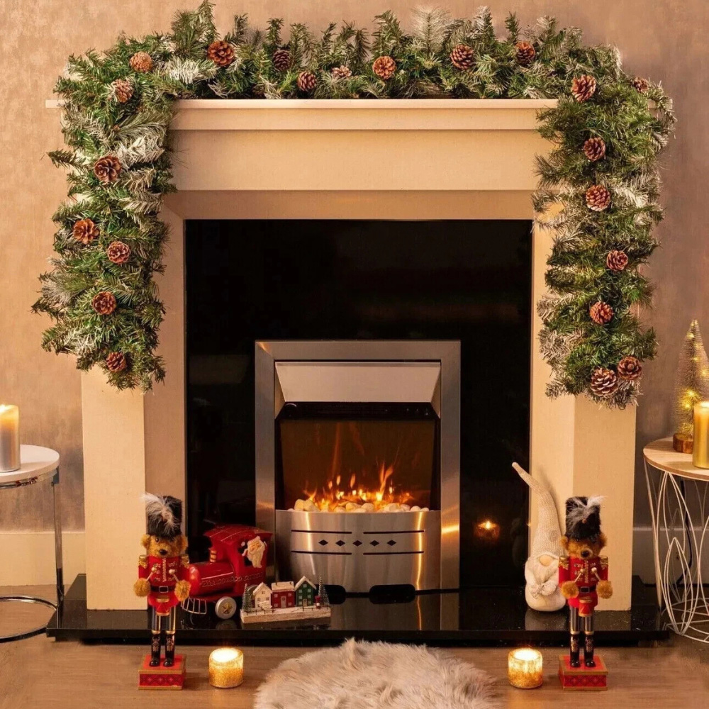 Bring the enchanting feel of a snowy woodland indoors with a nine-foot snow-covered garland, complete with lifelike pinecones and a frosted finish for a touch of rustic Christmas charm. Flexible and easy to shape, it’s perfect for draping over fireplaces, staircases, windows or doorways, letting you style it to suit your festive vision. Crafted from durable artificial materials, you’ll enjoy its timeless seasonal appeal year after year, whether you keep it natural or embellish with your favourite lights and baubles.