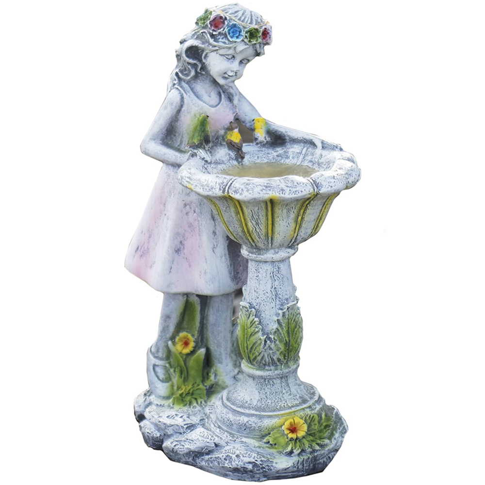 Light up your outdoor space with this Solar Fairy with Fountain Garden Ornament! Let this light shine through all of your garden. Manufactured from resin with a stone effect, this girl looming over a fountain is sure to stand the test of time as she is frost-protected and completely weatherproof. Solar powered, simply place the panel in direct sunlight, sit back and watch as this ornament lights up your walkways, flower beds, patio or decking. Please wipe the solar pane down once in a while to prevent rusting. This ornament is sure to stand out among the others and will make a great gift for any fairy and garden lover.