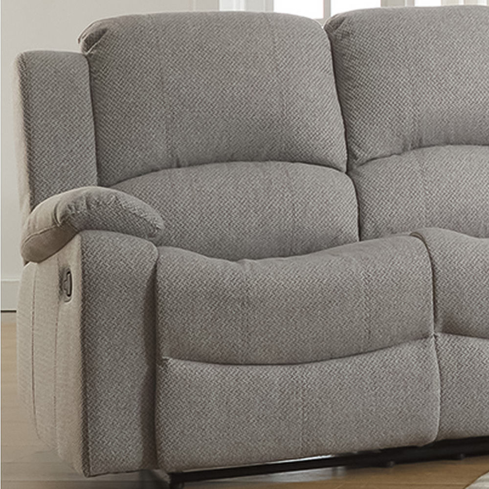 Upgrade your living space with the Marldon 3 Seater Light Grey Manual Recliner Sofa. Crafted from solid hardwood, this manually operated recliner is both durable and timeless. The upholstered textured fabric is resistant to daily wear and tear, making it a practical choice. It has a plush pocket-sprung and foam-filled interior and excellent lumbar support, making it the ideal spot to unwind after a long day. The dedicated two-man delivery team will ensure seamless and hassle-free assembly.