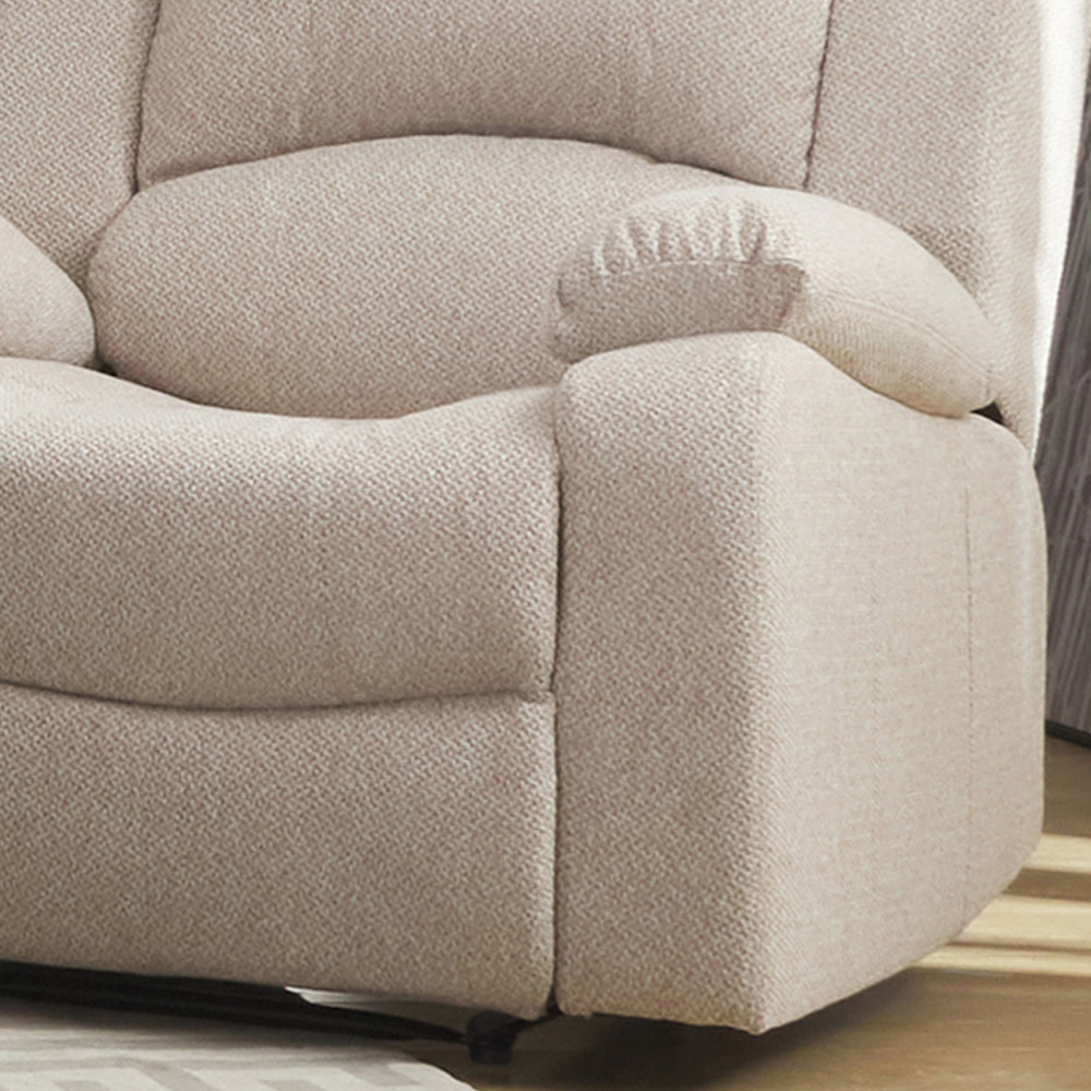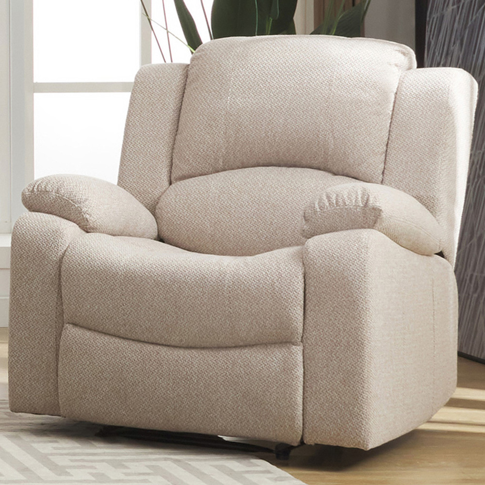 Upgrade your living space with the Marldon Single Seater Beige Manual Recliner Sofa. Crafted from solid hardwood, this manually operated recliner is both durable and timeless. The upholstered textured fabric is resistant to daily wear and tear, making it a practical choice. It has a plush pocket-sprung and foam-filled interior and excellent lumbar support, making it the ideal spot to unwind after a long day. The dedicated two-man delivery team will ensure seamless and hassle-free assembly.
