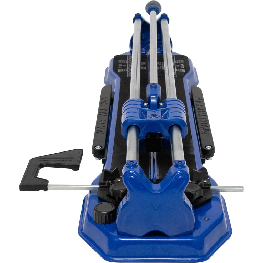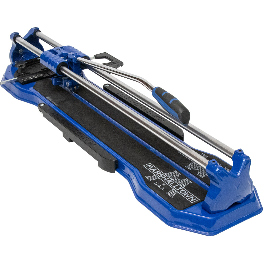 Marshalltown 24" (610mm) Tile Cutters are great tiling tools for pros and DIYers. It can cut ceramic, porcelain, and mosaic tile up to 24" (610mm) long and 1/2" (12mm) thick. This tool features a two-rod rail system that allows smooth operation, a 7/8" (22mm) tungsten carbide scoring wheel, and it includes a small breaker foot that is engineered to make cutting mosaic tiles even easier. As a bonus, each 24" Tile Cutter comes with a spare scoring wheel for double the amount of tile cutting.