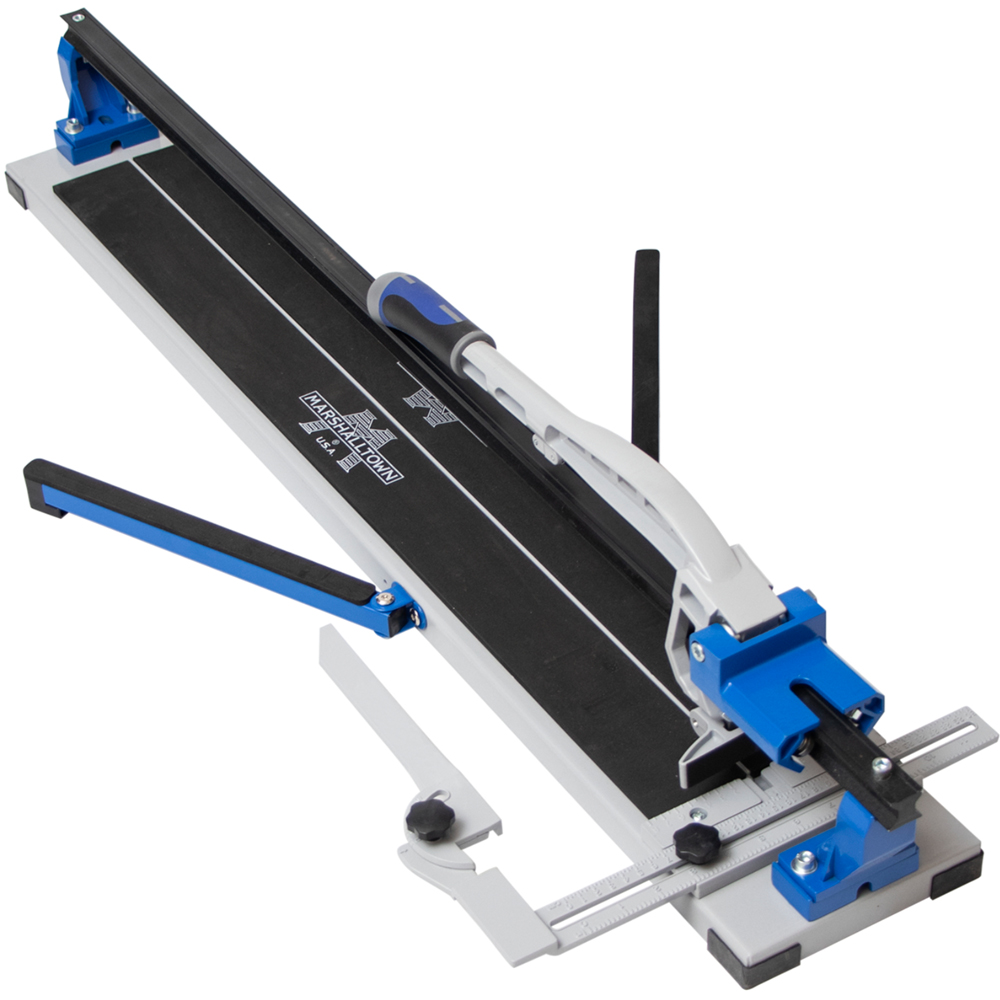 This Marshalltown Tile Cutter is a versatile cutting solution for ceramic, porcelain, and mosaic tile installations. It has a rigid I-beam construction, high-quality bearings, and a durable 7/8" (22mm) tungsten carbide scoring wheel for smooth, accurate cuts. Use this tiling tool to cut tile up to 36" (914mm) long and 9/16" (14mm) thick.