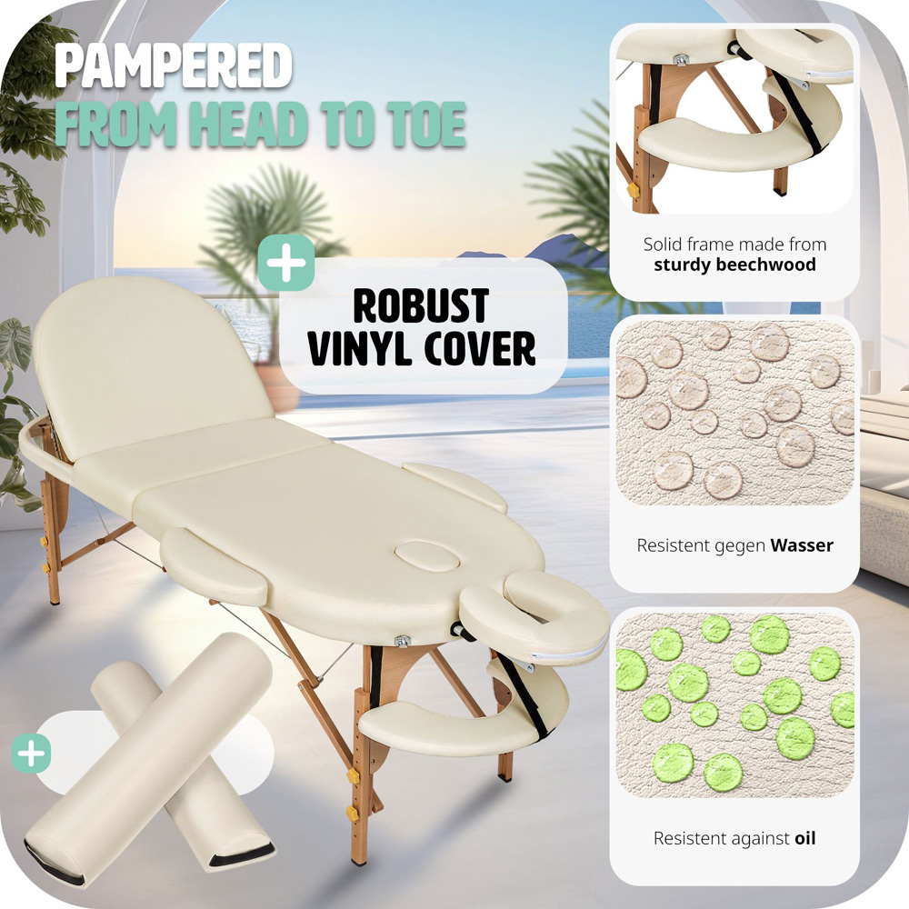 This cleverly designed massage table from Tectake offers unsurpassed stability, safety and lying comfort of the highest quality (padding height 10cm, pure upholstery approx. 5cm) and is also lightweight and portable thanks to the practical carry bag (included in the price)! The folding table is also height adjustable meaning optimal massage positions can be obtained. The comfortable cushioning of the couch is made of high-quality, fine-cell foam (Oxford 600D very strong) that perfectly moulds to the shape of the body so that the weight is evenly distributed and pressure points are avoided. The table's soft, vinyl cover is scratch- and impact-resistant as well as water- and oil-repellent.