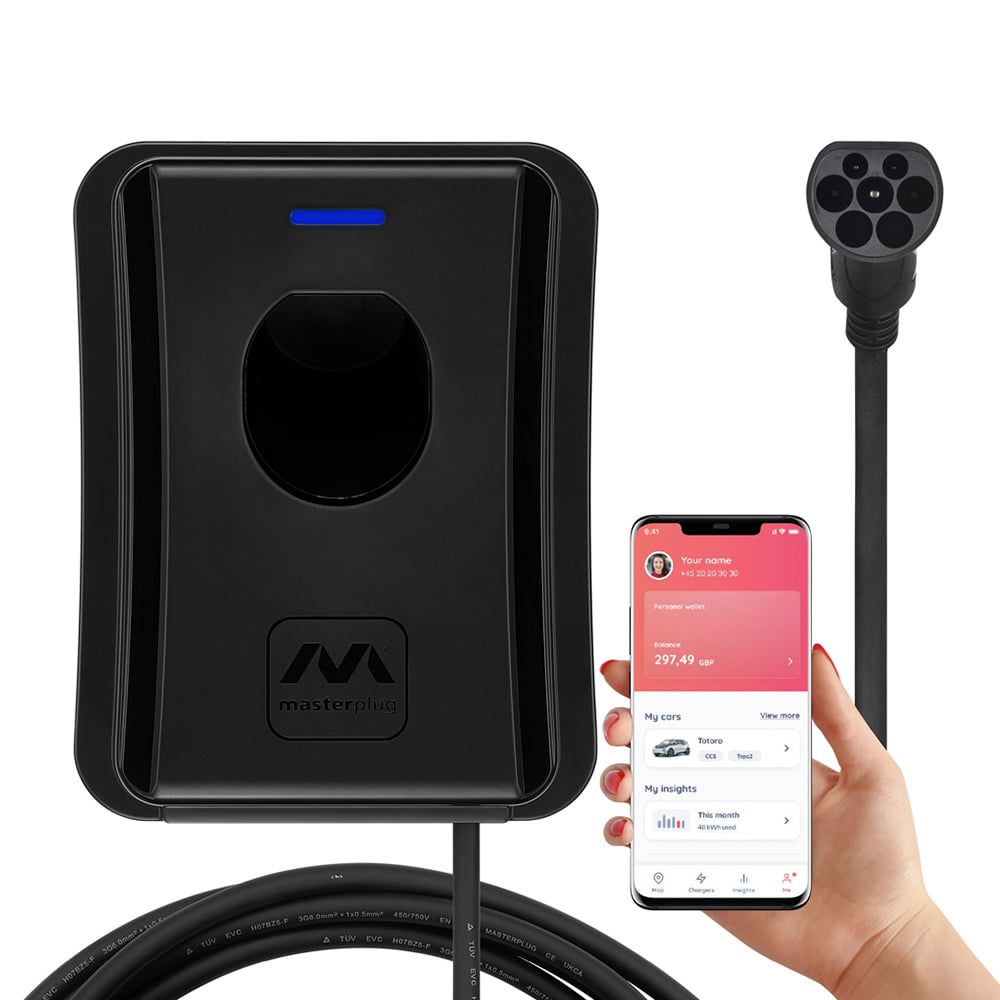 Experience the convenience of home charging with Masterplug 7400W Tethered Mode 3 EV Charger. Designed for Type 2 Electric Vehicles, this Mode 3 charger offers a smart and secure charging solution. Enjoy dynamic charging at rates up to 7.4kW (32A), translating to a rapid gain of up to 30 miles of range per hour. Supporting solar charging, leveraging energy from solar to charge your car with no additional cost or subscription. Built to last, with an IP55 rating for weather resistance, and an IK08 impact rating, ensuring a dependable charging solution.
