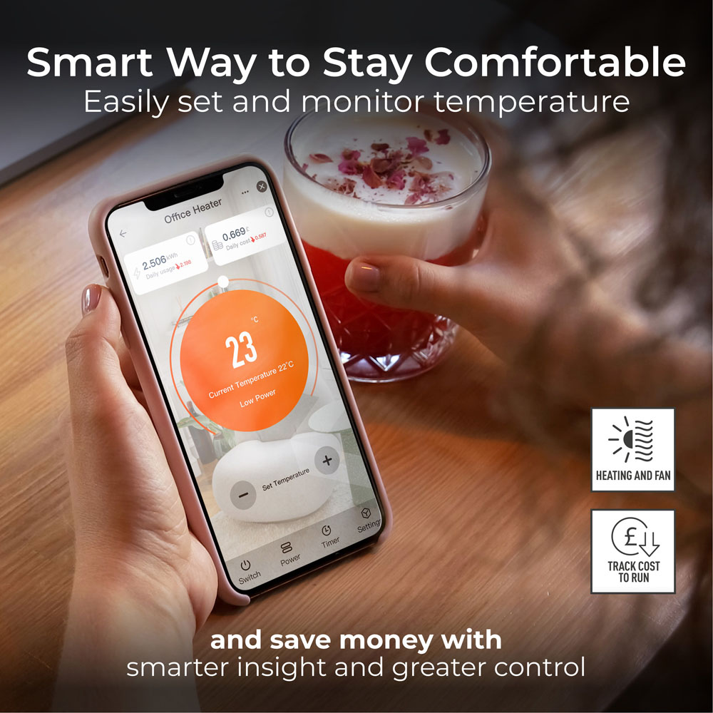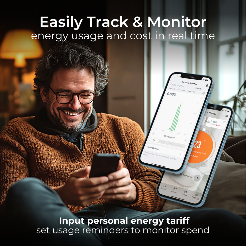 The Masterplug SmartEnergy Auraline glass panel heater in slate grey combines a sleek design with smart functionality. Connect via Wi-Fi and control via the LED display, voice commands, or the Masterplug SmartEnergy App - compatible with Amazon Alexa and Hey Google. Monitor energy use, set reminders, and programme weekly timers for efficiency. Silent operation with low (1000W) and high (2000W) modes and an adjustable thermostat, it delivers tailored heating. Safety features include a child lock, anti-tipping switch, and overheating protection.