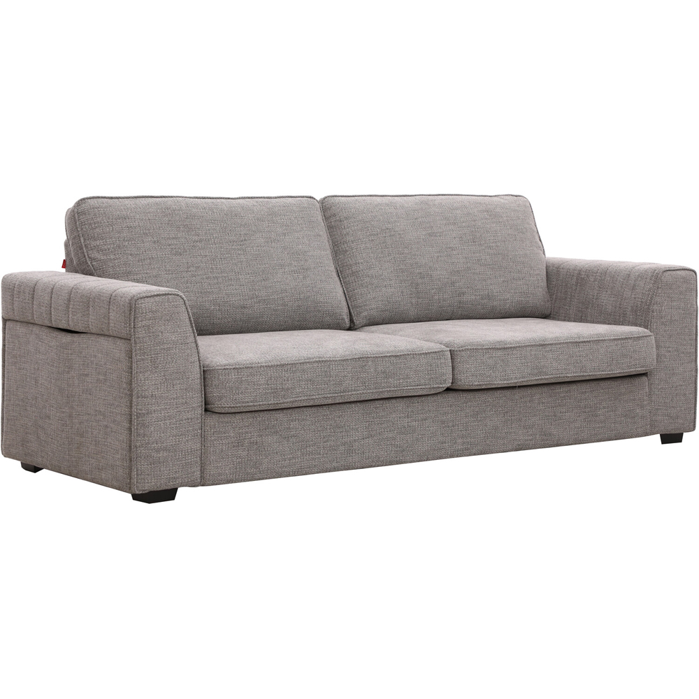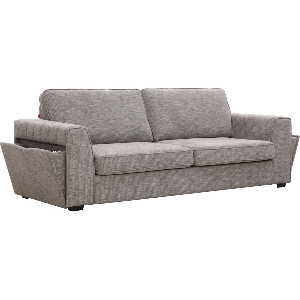 The Matilda 3 Seater Grey Sofa is a classic and modern addition to your living room. The soft and comfortable seat and back cushions will ensure you remain cosy as you sit back and relax after a long day. The settee has a traditional square shape and is upholstered in a neutral grey fabric that will coordinate effortlessly with your existing interior decor. On either side of the arms, you'll find hidden cupholders that are easy to pull out, so you'll always have your favourite beverage to hand as you binge-watch TV or entertain guests. It's big enough for three people at a time and will look particularly effective with other items in the matching Matilda suite.