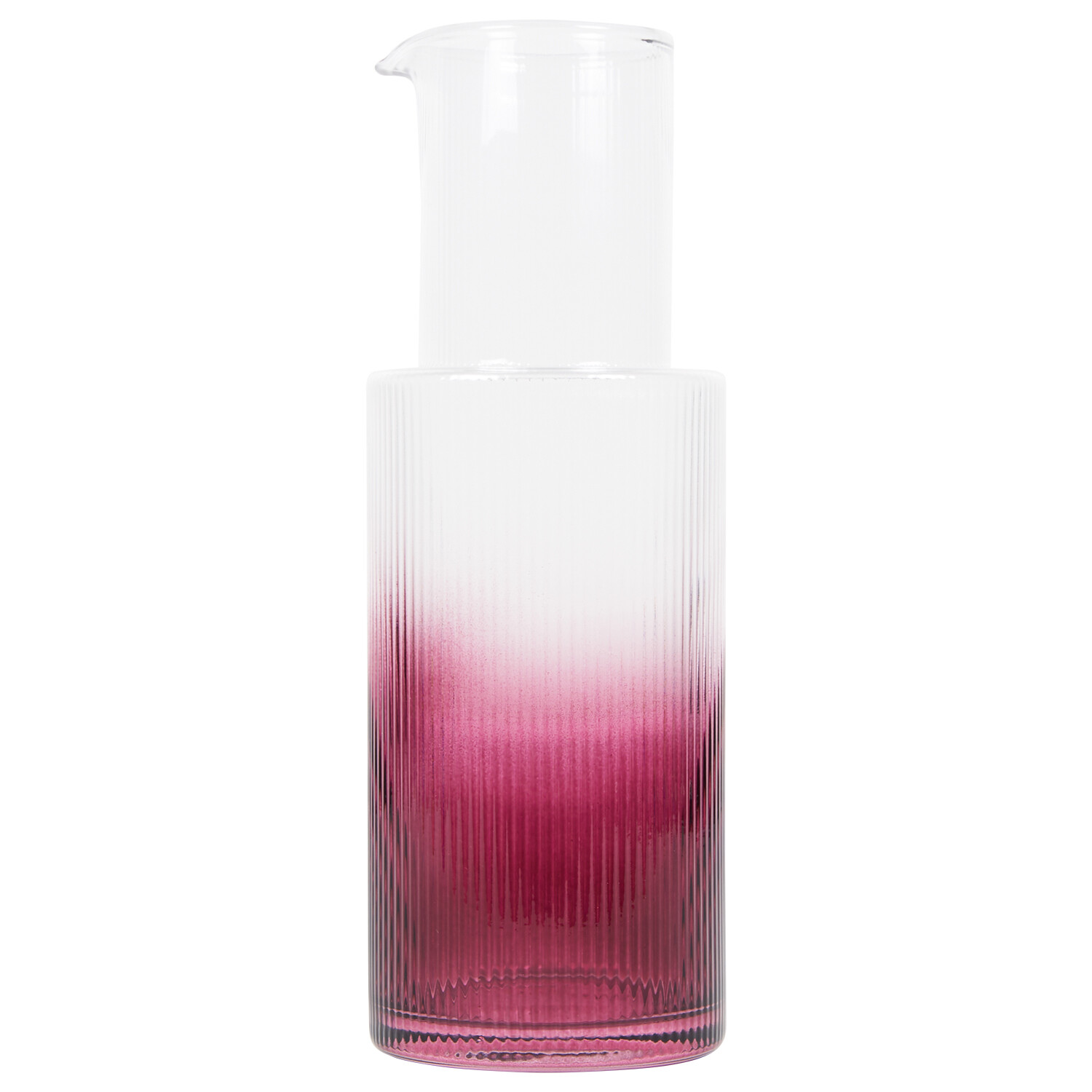 Serve your drinks in style with the Mauve Ombre Carafe. This stylish carafe flaunts an ombre design in stunning mauve, adding a touch of modern elegance to any table setting. It's finished with a ribbed pattern all over, creating a timeless look you'll love. With a generous 1l capacity, it's perfect for serving various types of drinks.