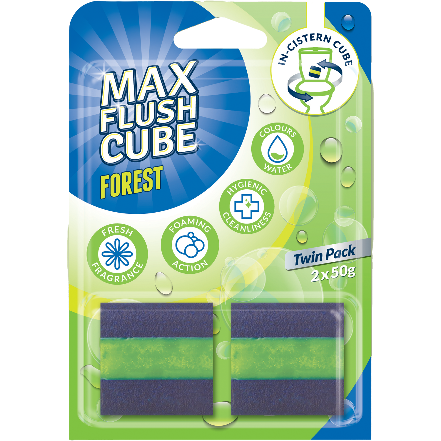 Providing a sparkling clean and foaming action, this Max Flush Cube Twin Pack gives your toilet a fresh fragrance you're sure to love. With a soothing lavender or forest scent, it colours your water and easily pops into the cistern, lasting up to 300 flushes.