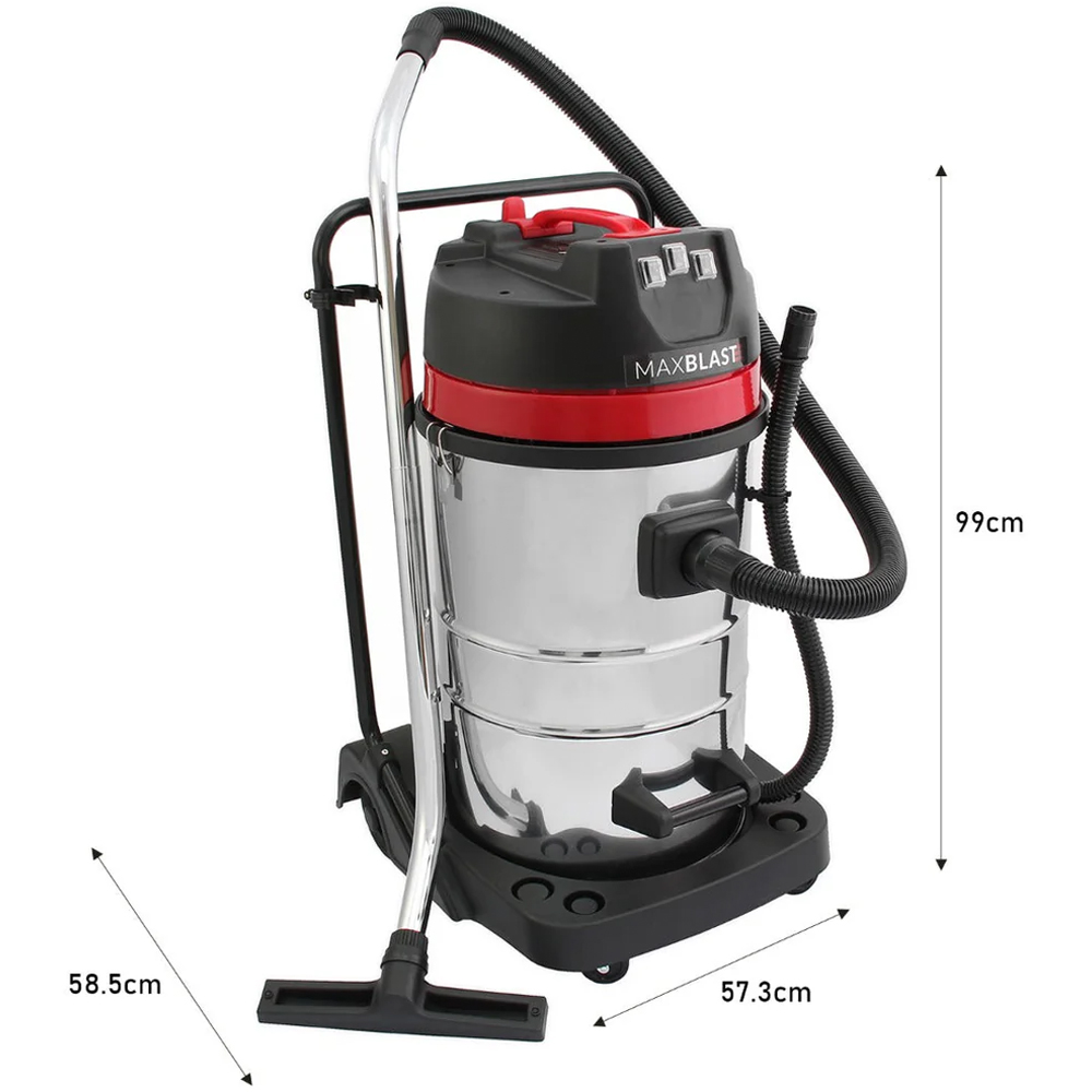 Upgrade your gutter cleaning setup with this high-performance gutter vacuum pole kit and 80L wet and dry vacuum, the ultimate solution for effortlessly maintaining clean and debris-free gutters. For all your heavy-duty cleaning needs, this powerful 80L industrial vacuum cleaner with a high-performance 3000W triple motor is always up for the job. Switch between the super practical wet and dry functions to suit the task at hand. Whether you need to clean up twigs and leaves or unclog overflowing drains, this multipurpose vacuum can tackle all your gutter has to offer. With an impressive extension range from 1.2 metres to an incredible 7.2 metres, the pole kit ensures you can reach even the highest and most hard-to-access gutters with ease. Whether you're working on residential or commercial properties, the 6-pole system allows you to customise the length of the pole assembly with 1.2-meter increments, catering to the specific requirements of each job. Boasting a 51mm pole diameter, the vacuum kit efficiently captures and removes debris, leaves, twigs, and other unwanted materials from your gutters. This thoughtfully crafted design helps to maximise airflow and minimise clogging, ensuring a thorough cleaning experience every time. With two specialised nozzles to choose from, you can easily adapt to various gutter configurations and cleaning needs. The narrow nozzle is ideal for accessing tight spaces, allowing you to reach areas that are otherwise difficult to clean. Alternatively, the wider nozzle covers a larger surface area, enabling you to clean larger gutters and remove debris quickly. We've also included a silicone U-bend neck and hose adaptor with the kit. These adaptors provide a secure and snug fit, enabling you to effortlessly connect the pole to your vacuum system and get the perfect angle you need to give a thorough clean. Crafted from high-quality aluminium, the pole is not only lightweight but also remarkably durable, ensuring longevity and reliability during every use. Its robust construction allows for optimal control and manoeuvrability, allowing you to navigate around obstacles effortlessly while effectively cleaning out your gutters. Wherever the job may take you, this vacuum and gutter pole kit is exceptionally easy to transport. The vacuum benefits from 4 hard-wearing castor wheels which effortlessly glide across your floor space. This is further enhanced by an ergonomic handle fitted to the lid for convenient manoeuvring. An extra-long 9m power cable and a 1.5m hose also offer unrestricted movement in large areas. Despite the pole's impressive reach, it handily breaks down into 6 equal parts measuring 1.3m. This supports easier transportation and compact storage when not in use. Combining convenience, durability, and efficiency, this innovative vacuum pole kit and 80L vacuum provide a seamless gutter cleaning experience to keep your drainage system running smoothly.