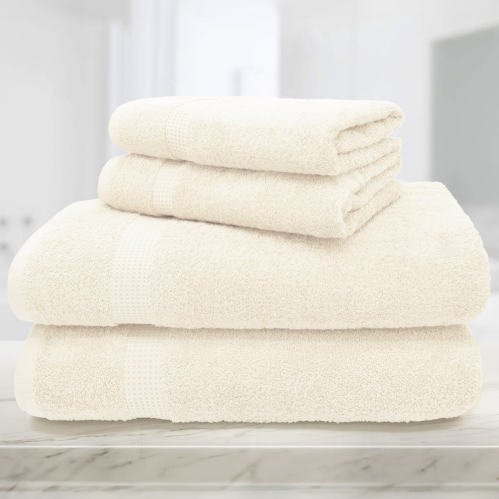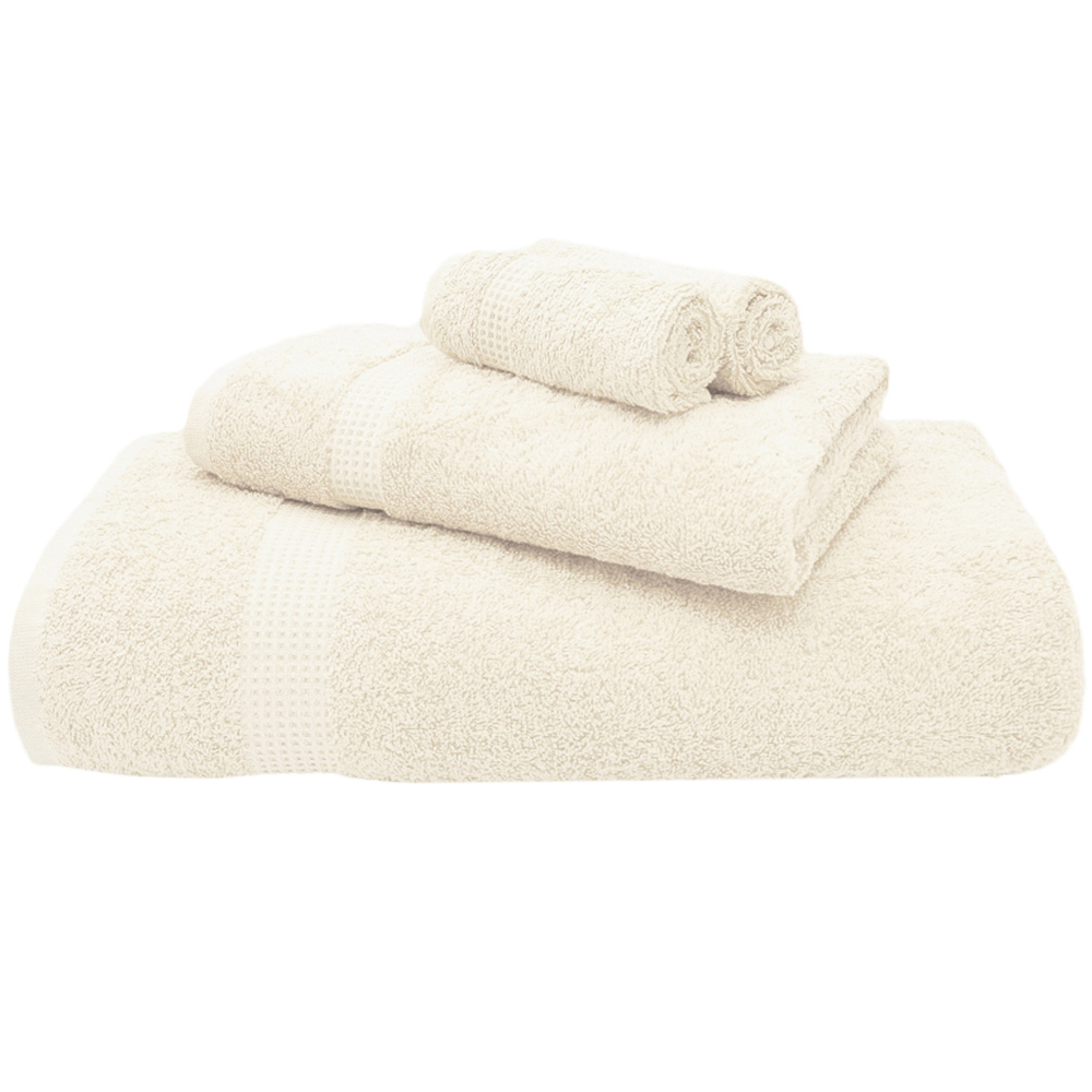 Dry your hands with this desirably soft and highly absorbent Mayfair Egyptian Cotton Cream Hand Towel Set of 2. Made from 100% high-quality combed cotton, these towels are thick, incredibly smooth, and sumptuously plush. With a 600 GSM count, they feel soft against your skin, providing instant indulgence. They're super absorbent and will dry you off your hands quickly. With a beautiful waffle header for added detail, they come in exciting and pretty shades, enhancing any bathroom décor. Dimensions - 50 x 85cm.