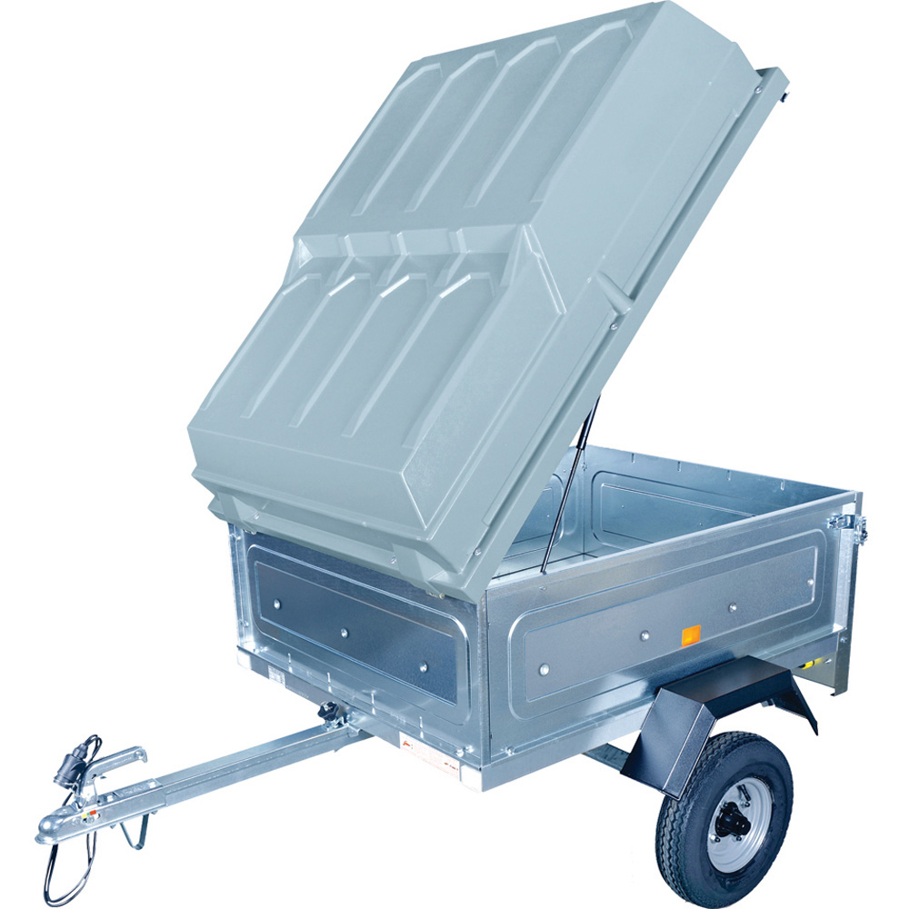 Lockable ABS hard cover fits directly to the trailer sides or a high side kit and protects the trailer contents from the elements. It also keeps the load secure and deters theft. The integral gas strut keeps the lid open during loading. Suitable for Maypole SY150 and Erde 142, 143 and 153 trailers, the hard top increases the height of the trailer by approximately 20cm at the front of the trailer and 25cm at the rear due to its stepped design. It also provides a secure environment for your load with locking latches fitted as standard.