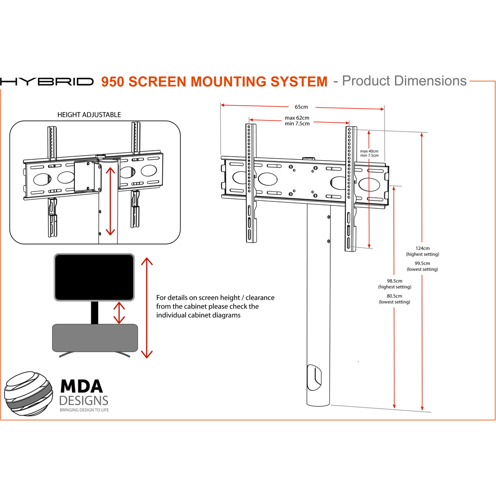Converts your MDA Designs Hybrid Compatible TV Unit into a Cantilever style system. With incorporated 60-degree TV screen rotation and fully integrated cable management system. Additionally, keeping your TV screen safe with the built-in screen secure system.