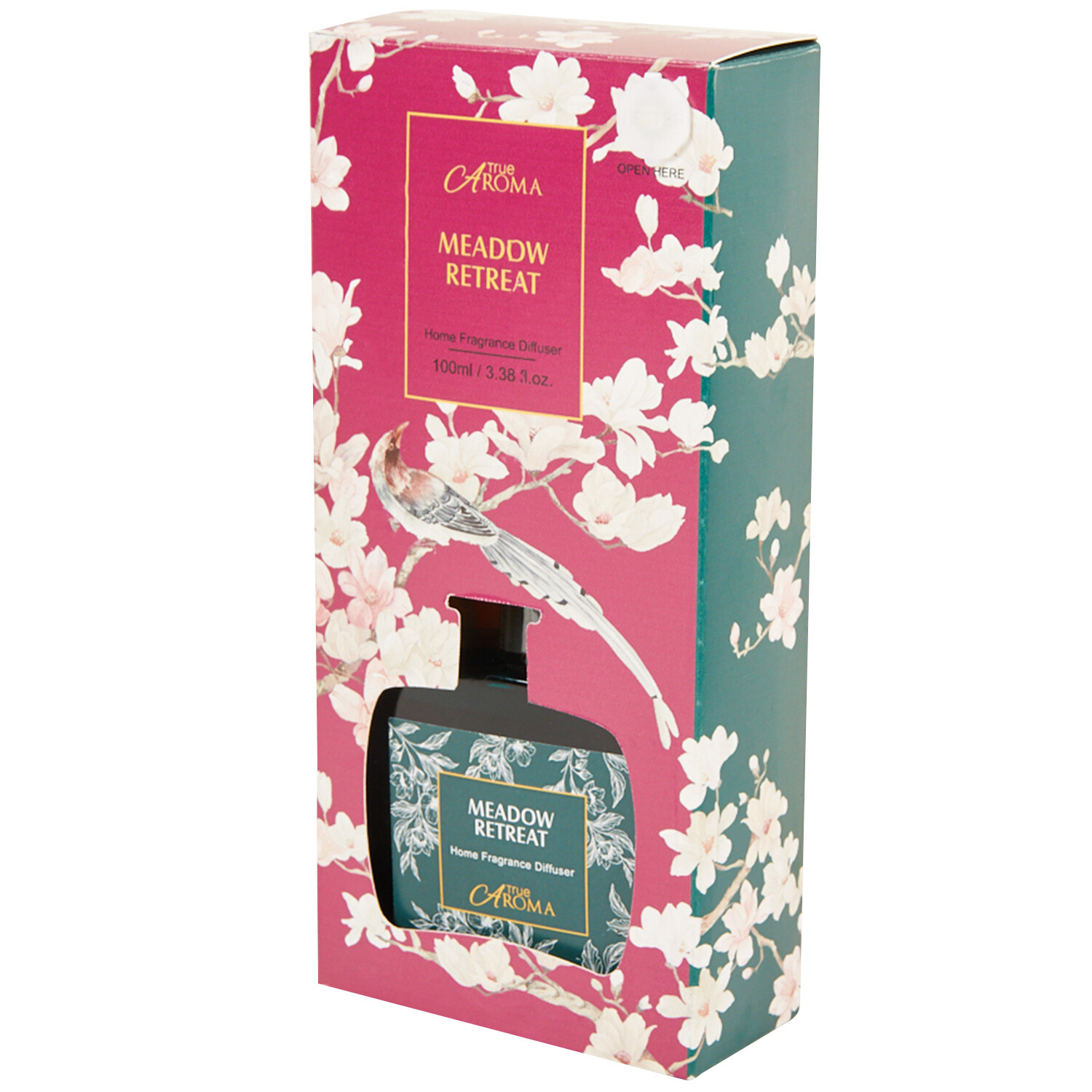 Give your home a rustic floral scent with this Meadow Retreat Diffuser from True Aroma. With a gorgeously designed bottle, this reed diffuser will add elegance and a relaxing atmosphere to any room in your home.