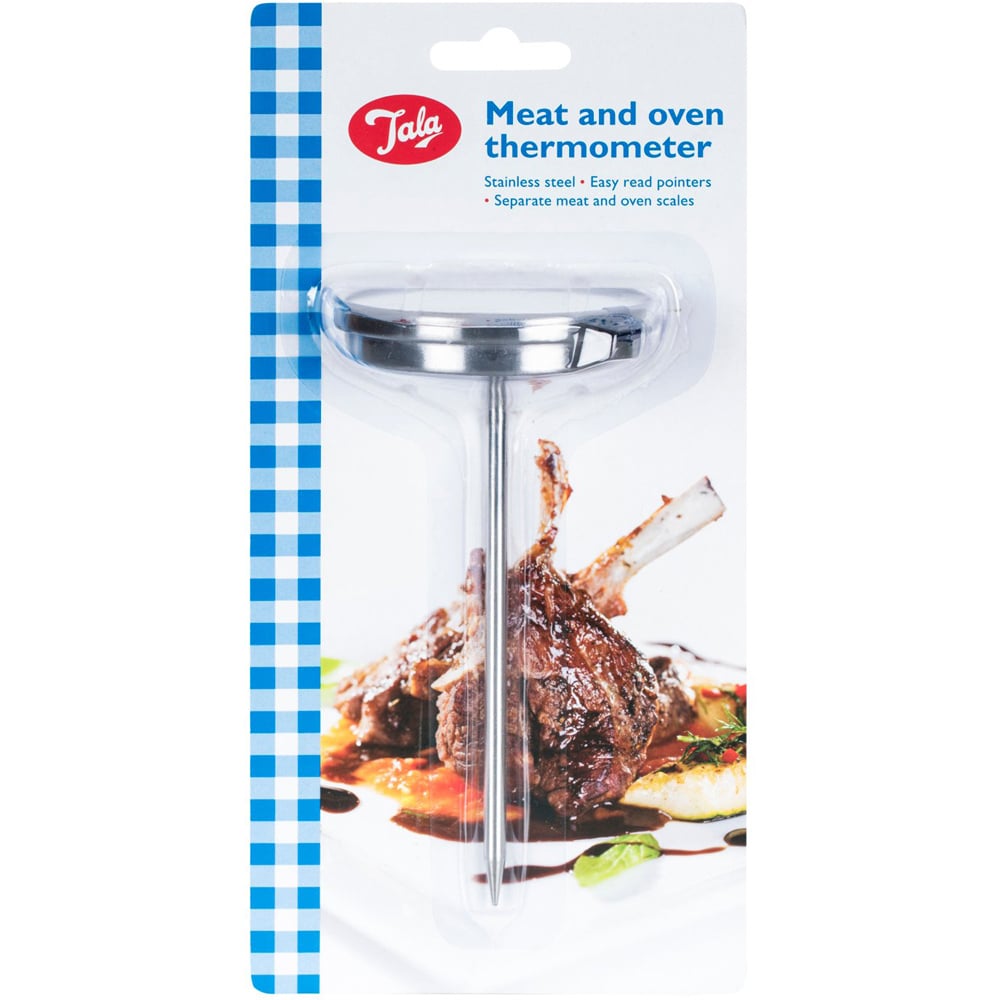 Keep a track of how well you're cooking your food with this handy Meat and Oven Thermometer. Made of durable stainless steel, this thermometer comes equipped with two separate easy to read indicators - one for your meat and one for your oven.