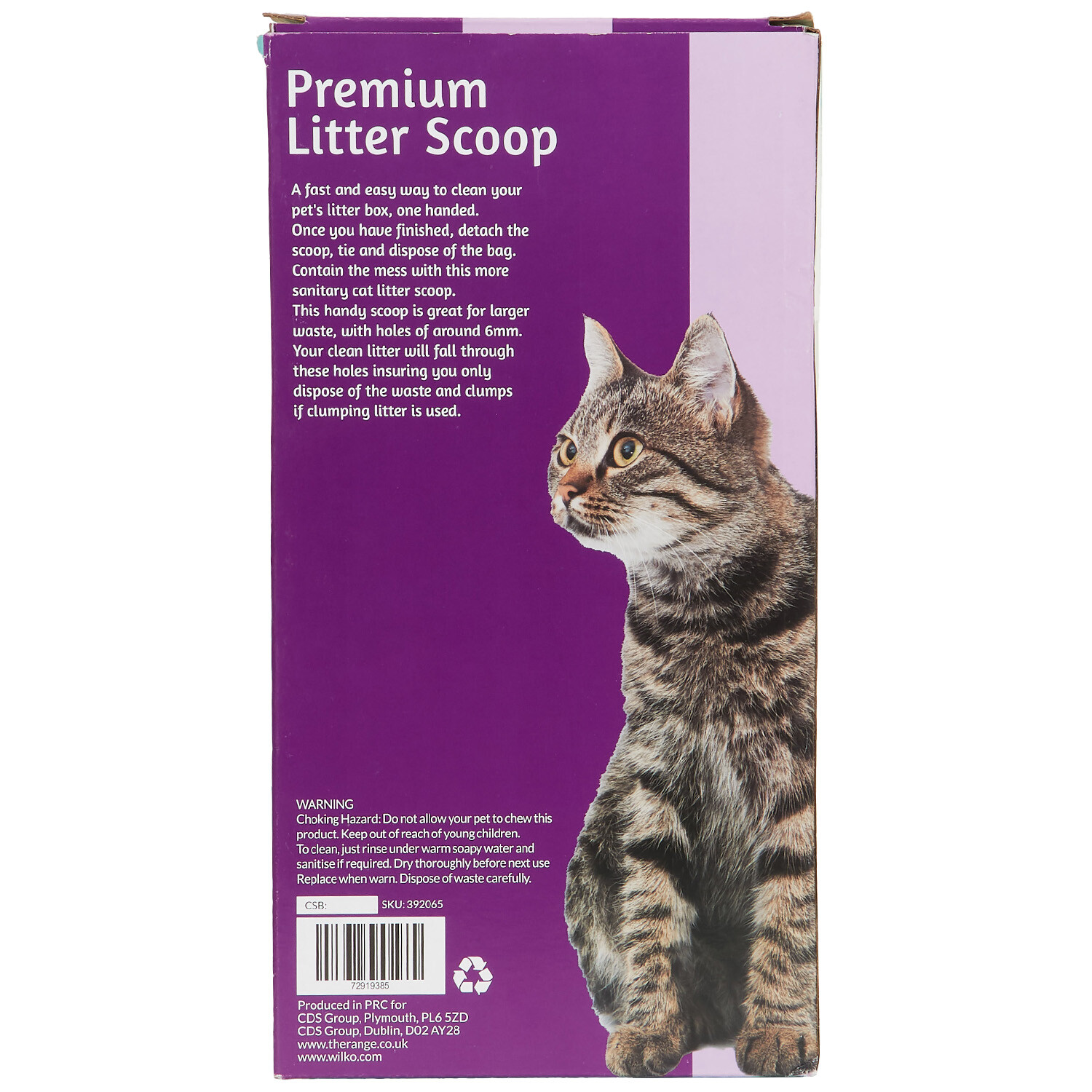 Keep your kitty's litter box clean with the Mega Litter Scoop with Bag Dispenser. This litter scoop easily picks larger waste while its holes sift through the clean litter beads, allowing you to clear your cat's litter box without making a mess. It comes along with poop bags to make your cleaning task easier.