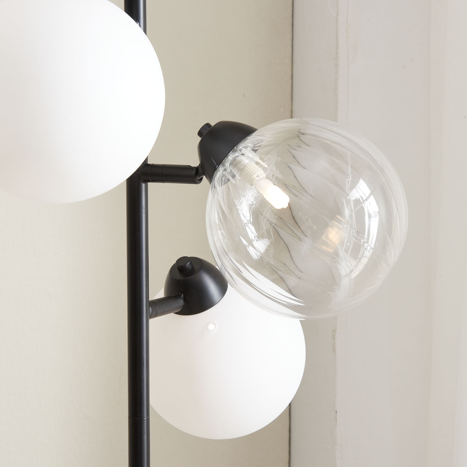 Fill your living room with contemporary flair and rich light with this Meghan 4 Light Floor Lamp. With four bulb fittings, this floor lamp pairs perfectly with fresh, clean colours and decor. The black metal finish gives this lighting feature a sleek and bold appearance. The height of this lamp makes it well-suited for pairing with an armchair or sofa to act as a reading light or to create a stunning glow to illuminate your space. Please click here to find our range of lightbulbs.
