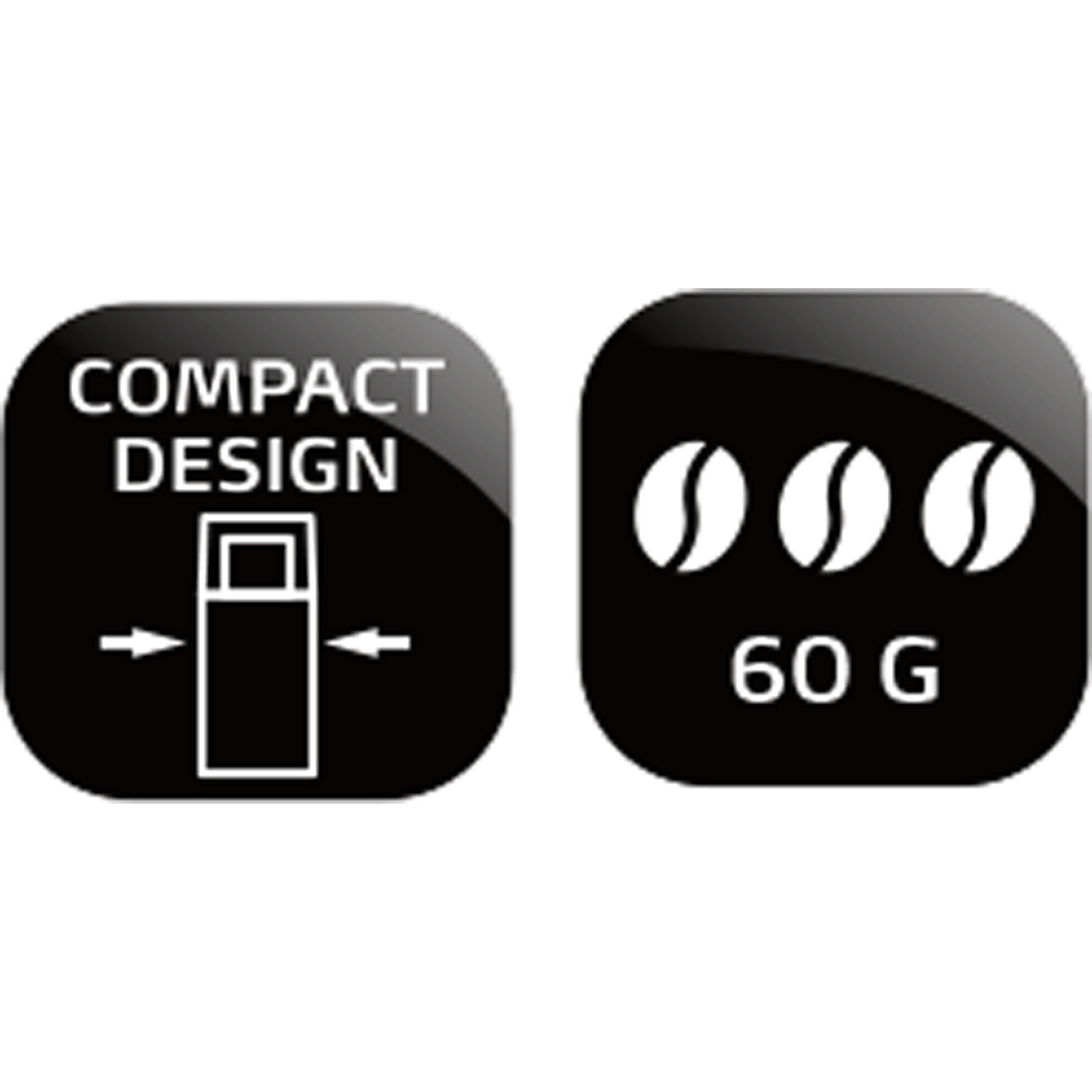 This electric coffee grinder Melitta® amigo® with a capacity of 60g, two high-quality, stainless steel blades and simple operation guarantees fresh enjoyment in every cup. You control the grinding process by holding down the button until the coffee beans are ground to the fineness required for the specific preparation type. Freshly ground – for your moment of aromatic coffee enjoyment.
