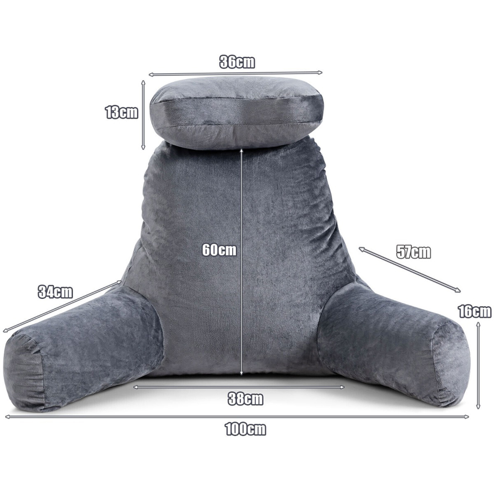 Experience unparalleled comfort with the Costway Grey Memory Foam Back Support Cushion, designed to cradle your body in a warm embrace. Filled with a highly resilient shredded memory sponge, this pillow contours to your natural body shape, providing optimal support for your head, neck, and back. The detachable neck roll offers adjustable comfort, while the extra-large size ensures you have plenty of space to relax. Ideal for reading, watching TV, or gaming, this pillow features convenient side and back pockets for storing essentials and a removable plush cover for easy cleaning. Whether you're lounging on the floor or snuggling in bed, this reading pillow is your ultimate relaxation companion.
