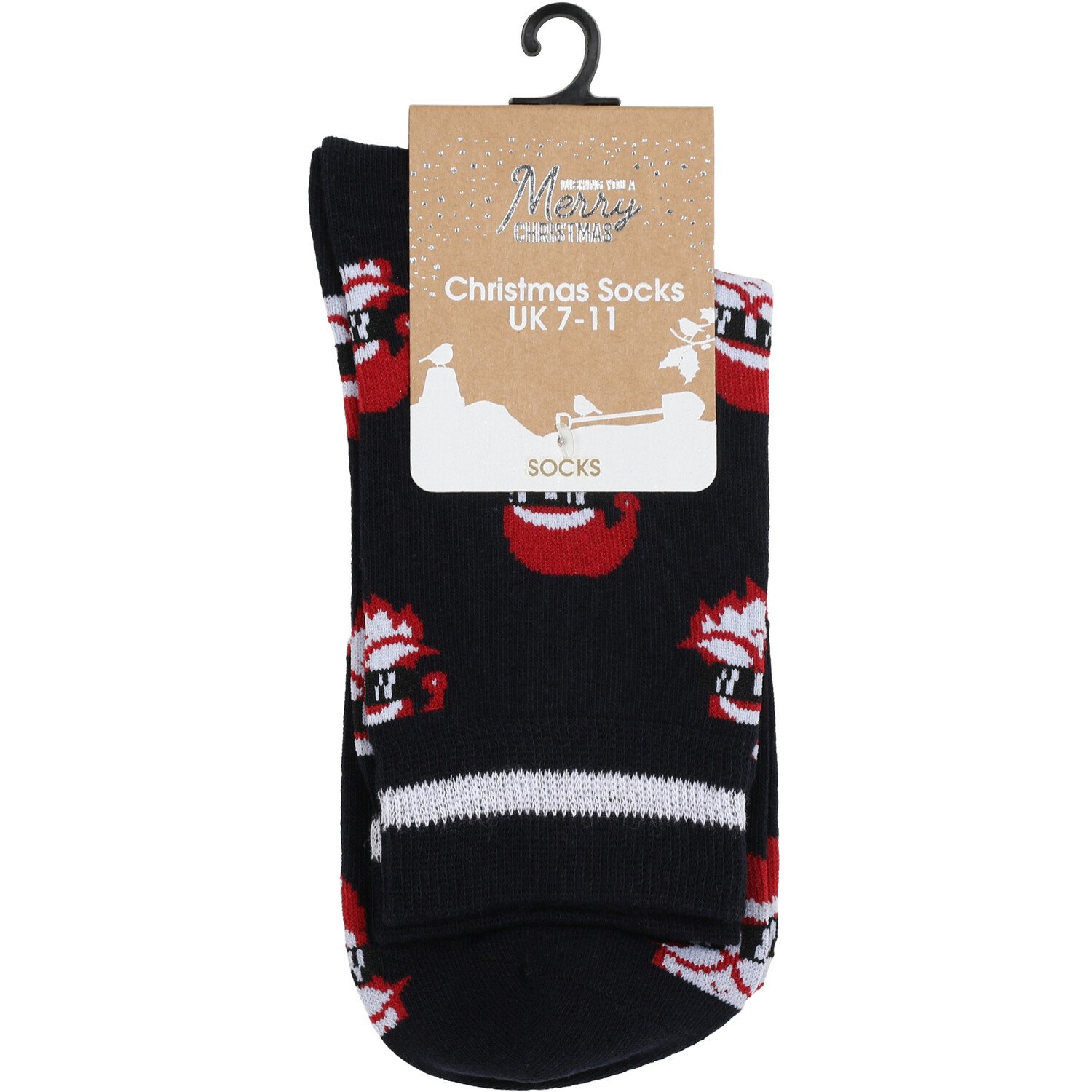 Step into the holiday spirit with these Mens Christmas Socks. These socks are perfect for spreading cheer, featuring an assortment of fun, festive designs. Ideal for Christmas gifting, they make a thoughtful and practical present for your loved ones. This pair of socks is available in an assortment of designs.