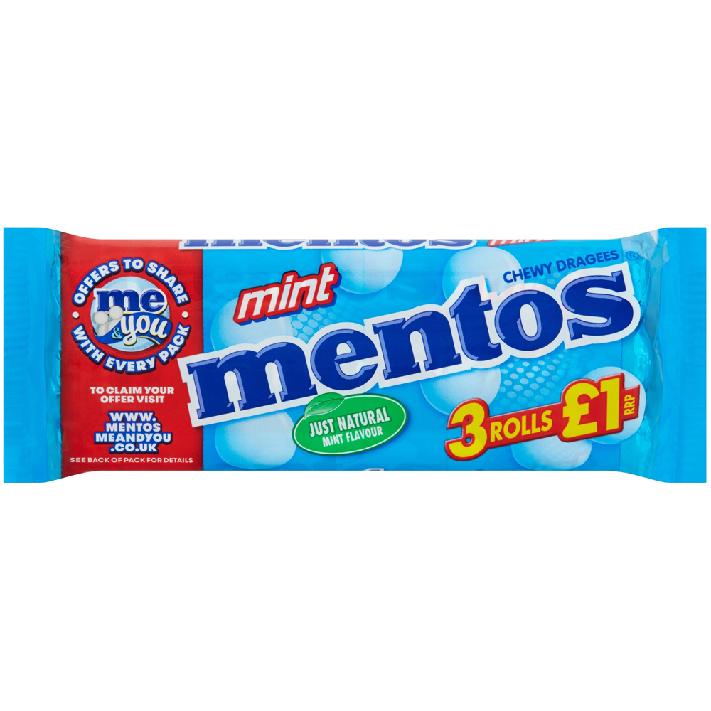Mentos Chewy Dragees Mint 3 X 38G (114G).