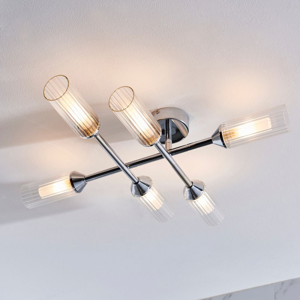 Merano Casoria Multi Arm Chrome Plate Semi Flush Bathroom Ceiling Lamp