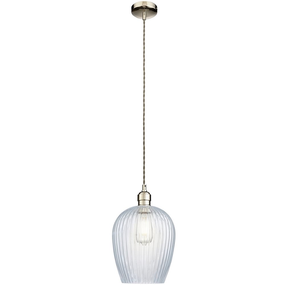 Merano Livorno Ribbed Glass Bright Nickel Plate Dome Pendant Ceiling Light