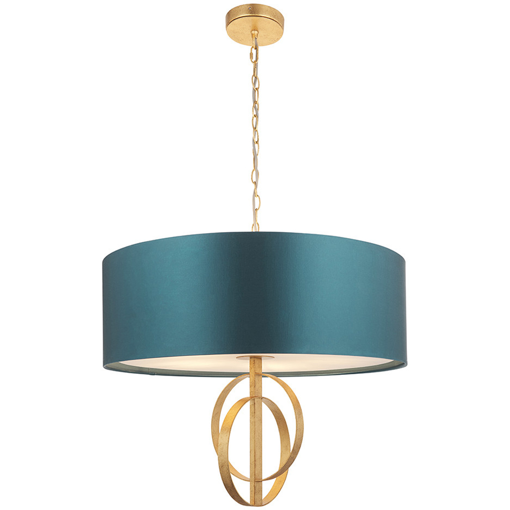 Elevate your space with the Merano Trento Antique Gold and Teal 5 Light Pendant Ceiling Light. Its luxurious fabric shade and antique finish create a warm, elegant glow, perfect for enhancing the ambience in bedrooms or living areas with timeless sophistication. This design complements a variety of interior styles.