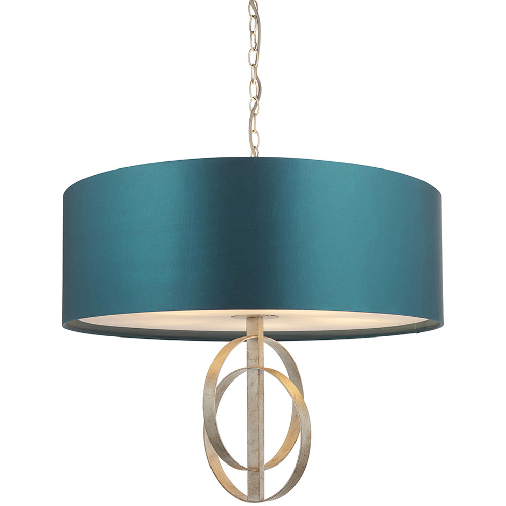 Merano Trento Antique Silver and Teal Satin Fabric 5 Light Pendant Ceiling Light