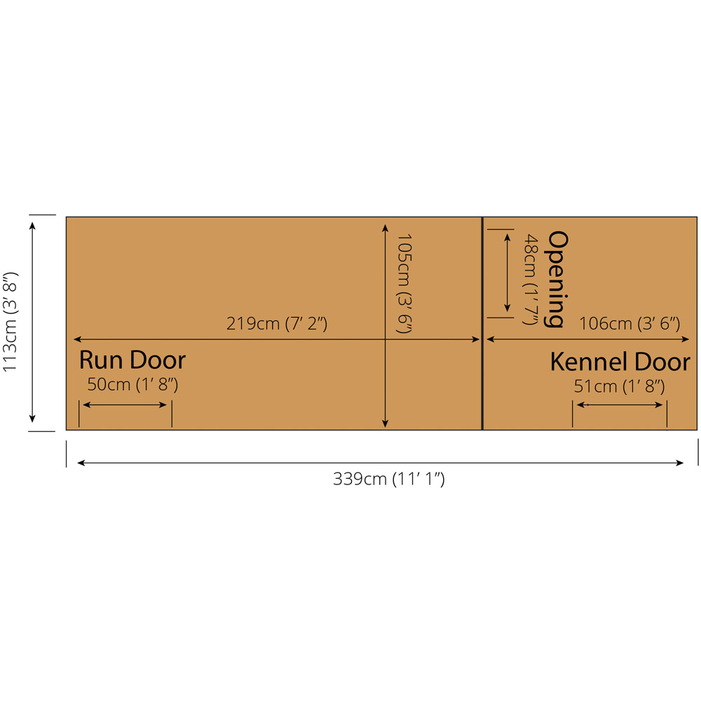 Provide your pet with the comfortable and cosy shelter they dream of with Mercia 12 x 4 Berkshire Dog Kennel and Run. The mesh used in the front panel prevents any potential escape bids while allowing plenty of light and fresh air to enter the interior. The walls, floor and roof are made using interlocking 12mm tongue and groove cladding. Two doors feature in this dog kennel, one that enters the sheltered area and one that enters the open-faced section. Extremely robust and designed to comfortably withstand the harshest of weather conditions - this garden dog run is supported by 28mm x 28mm. The floor tiles that feature in the kennel are completely removable, which makes it very easy to clean. It comes complete with a ten-year anti-rot guarantee.
