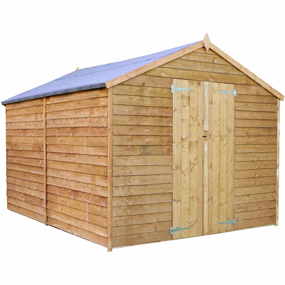 The 12 x 8ft overlap apex windowless wooden shed from Mercia is the perfect option for those looking to expand their storage space at home. The large, open floor space and double doors offer easy access and storage for larger gardening equipment, such as lawnmowers, wheelbarrows and ladders, as well as garden furniture and accessories. The windowless design ensures your belongings will remain safe, secure and out of sight. Made in the UK, using ethically sourced, FSC®-certified timber, this shed is ideal for those looking for a secure storage solution. The walls of this garden building are constructed using horizontal boards that overlap each other. This traditional construction method creates solid panels that encourage rainwater to run off the building, protecting your stored belongings from the elements. Complete with strong wooden internal framing, this building offers a rigid and long-lasting structure. The traditional apex roofline ensures there is plenty of height inside for taller items and storage units. The floor and roof are constructed using solid sheet board, a durable material made up of several layers of tightly compacted oriented strands. Solid sheet board is perfect for everyday general use and storage. Robust roofing felt fixtures and fitting are all supplied as standard, alongside our detailed instructions and manufacturer's recommendations to ensure a simple, stress-free assembly process. This building comes with an anti-rot guarantee to ensure your garden building looks great and lasts the test of time. This garden building comes with a conditional 10-year anti-rot guarantee as well as a 12-month manufacturer warranty. Annual re-treatment is required to maintain your garden building and the anti-rot guarantee.