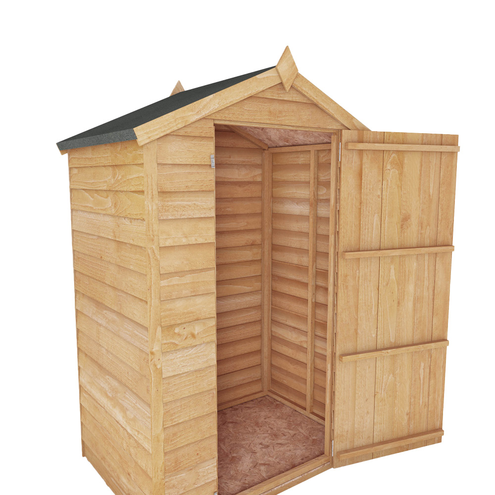 The Mercia Garden Overlap Apex Windowless Shed is an excellent storage option for those looking for somewhere to store garden accessories and tools while maximising the garden space. Featuring an apex roofline, this garden shed is great for storing taller items such as ladders and strimmers. The windowless design ensures your belongings remain safe, secure and out of sight. Made in the UK using ethically sourced, FSC®-certified timber, this building is ideal for those looking for a quality shed that offers excellent value. The walls of this shed are constructed using horizontal boards that overlap each other. This traditional method of construction creates solid panels that encourage rainwater to run off the building, protecting your stored items from the elements. Complete with thick wooden framing to support the overlap panelling internally, this building has a rigid and long-lasting structure. Solid sheet board is used to form the floor and roof, a durable material that is made up of several layers of tightly compacted oriented strands. Solid sheet board is perfect for everyday general use and storage. Robust roofing felt fixtures and fittings are all supplied as standard, alongside detailed instructions and manufacturer’s recommendations, to ensure a simple and stress-free assembly process. The shed comes with an anti-rot guarantee to ensure your garden building looks great and lasts the test of time. This building, in particular, comes with a conditional 10-year Anti-rot guarantee and a 12-month manufacturer’s warranty. Annual re-treatment is required to maintain your building and the Anti-rot guarantee. Size: 3 x 4ft.