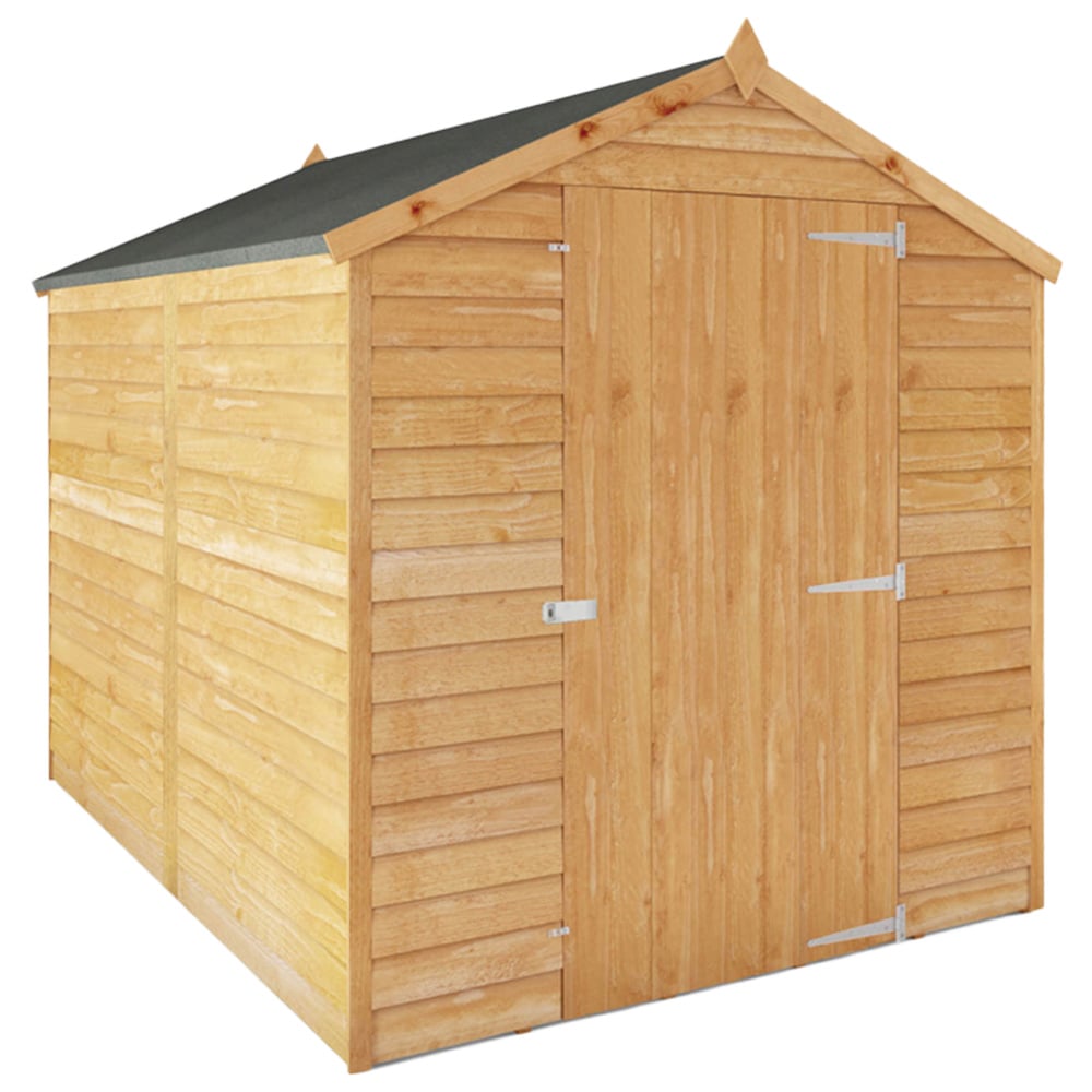 The overlap apex windowless shed by Mercia Garden makes the perfect storage solution for those looking to increase the functionality of their garden. This spacious garden shed is great for storing bicycles, lawnmowers and general garden accessories. The windowless design ensures that your belongings remain out of sight and secure. Made in the UK using ethically sourced, FSC®-certified timber this building is perfect for those looking for a storage solution that offers excellent value. The walls on this garden building are formed using horizontal boards that overlap each other, this traditional method of construction creates solid panels that encourage rainwater to run off the building, protecting your stored belongings from the elements. Complete with strong wooden internal framing, this building offers a rigid and long-lasting structure. The traditional apex roofline ensures there is plenty of height inside for taller items and storage units. The floor and roof are constructed using solid sheet board, a durable material made up of several layers of tightly compacted oriented strands. Solid sheet board is perfect for everyday general use and storage. Robust roofing felt fixtures and fitting are all supplied as standard, alongside detailed instructions and manufacturers' recommendations to ensure a simple, stress-free assembly process. Comes with a conditional 10-year Anti-rot guarantee as well as a 12-month manufacturer’s warranty. Annual re-treatment is required to maintain your building and the Anti-rot guarantee.