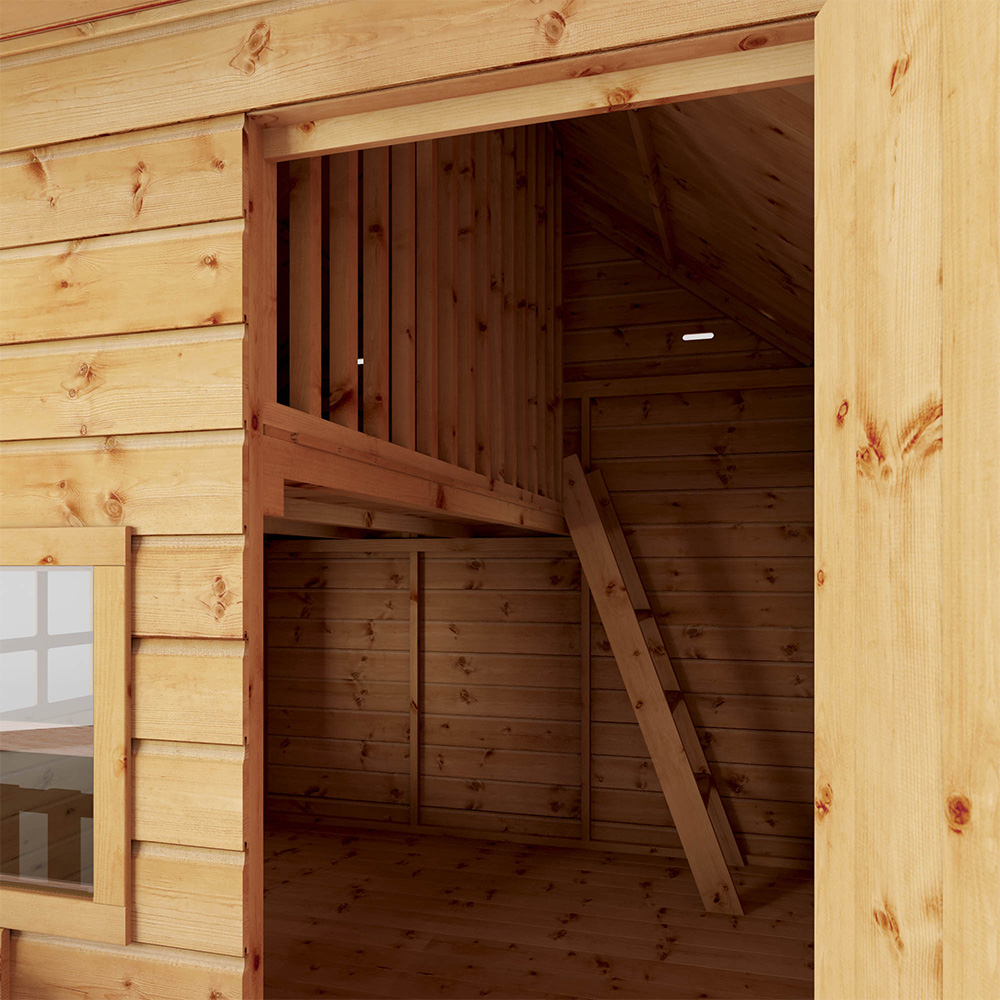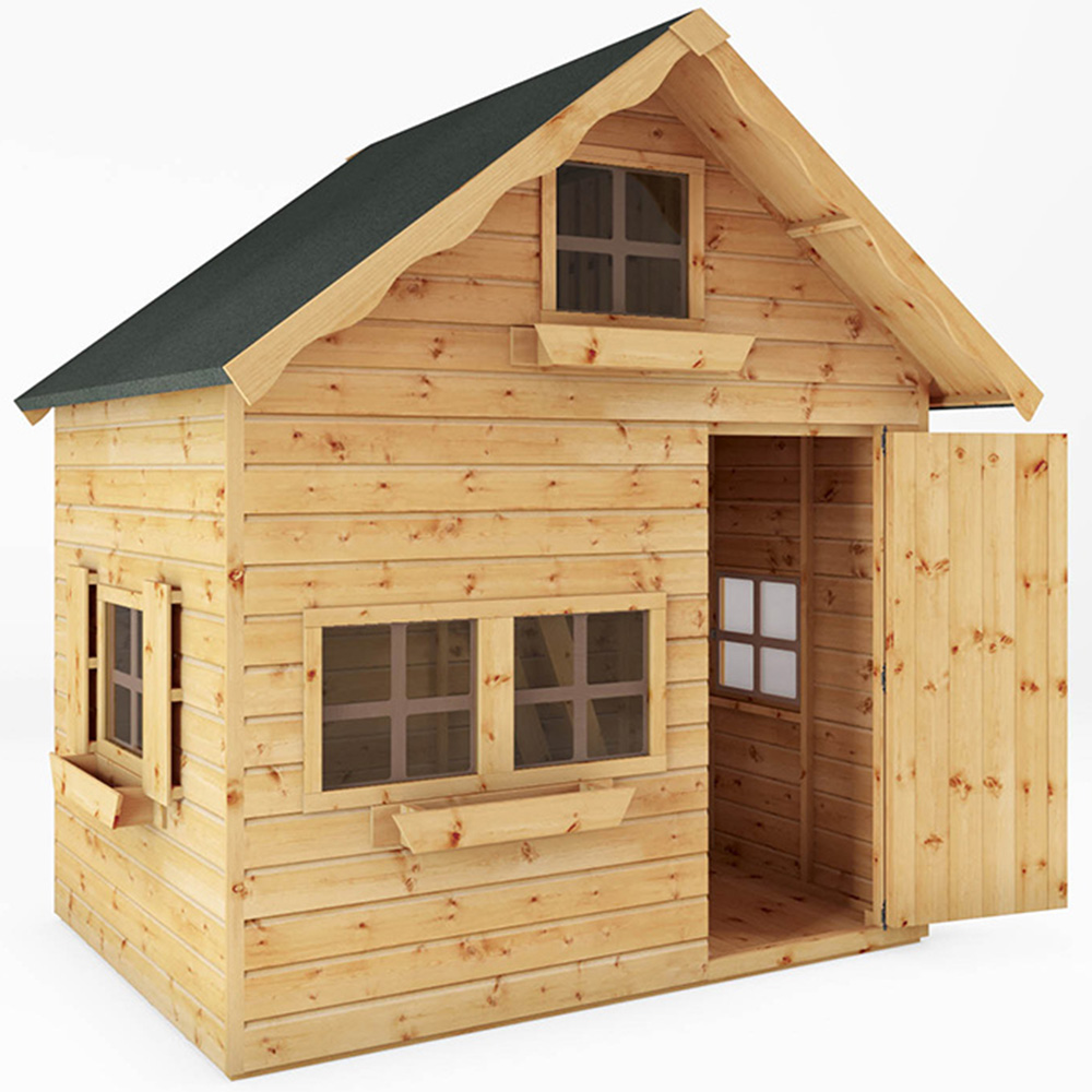 Take play to an exciting new level with our 7 x 5ft Swiss Cottage Playhouse. Packed with exciting features the Swiss Cottage’s double-storey layout gives your child plenty to explore. Meaning there are hours of fun to be enjoyed. With a quick coat of paint, this quaint playhouse can be easily transformed into a scene from your child's wildest dreams. Styrene windows flood this playhouse with light. Creating a bright and airy interior that your little one can really make their own. Throughout the entirety of the design process, the safety of this playhouse is paramount. This is why all the playhouses are EN71 Certified and UKCA Marked. This Swiss Cottage includes a number of design features that ensure daily play is safe for everyone. Such as ladder treads to avoid slipping, rounded timbers to prevent splinters and a 12mm safety finger gap around the door. Manufactured here in the UK, using sustainably sourced and regulated timber, this playhouse uses sustainably sourced timber. Premium Shiplap boards form the walls of this playhouse creating a panel that is durable and watertight. The structure is further supported by strong internal framing and the addition of a tongue and groove roof and floor. A hard-wearing material that can easily withstand daily use. Robust fixtures and fittings and high-grade mineral felt are supplied as standard with this playhouse.