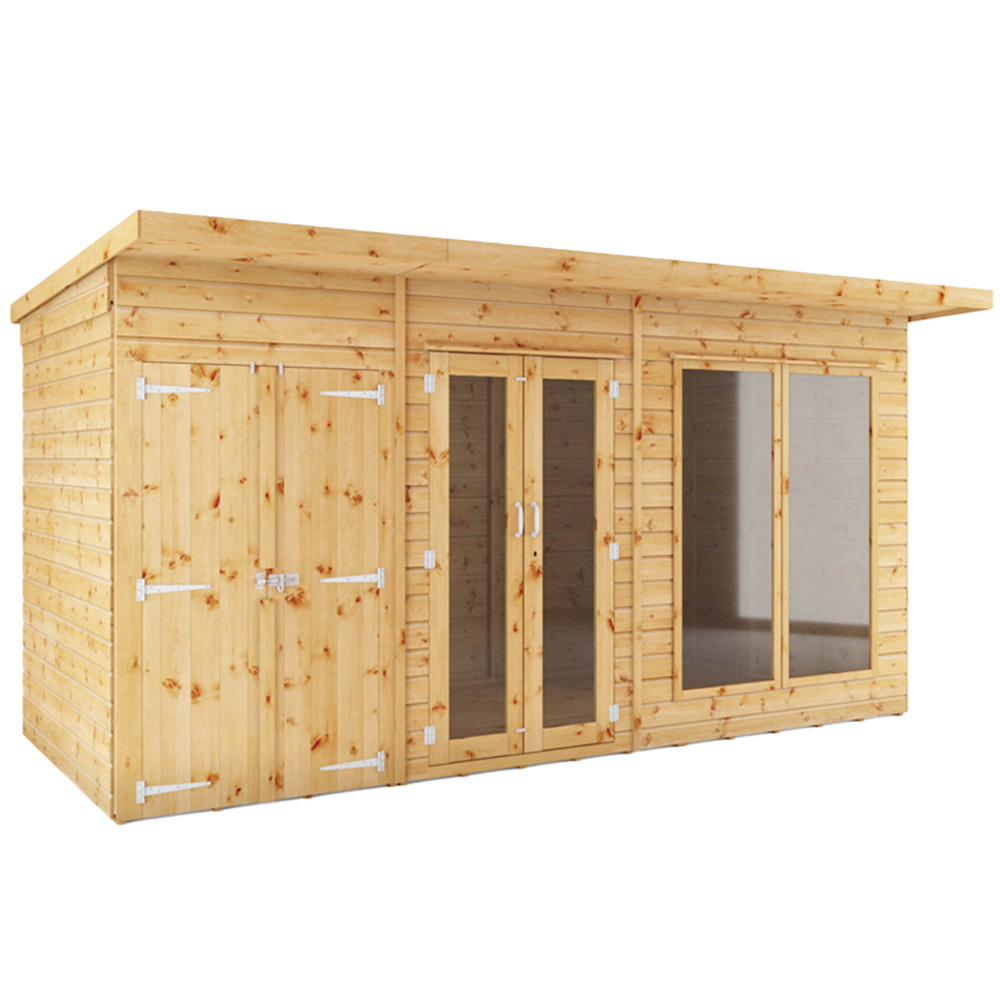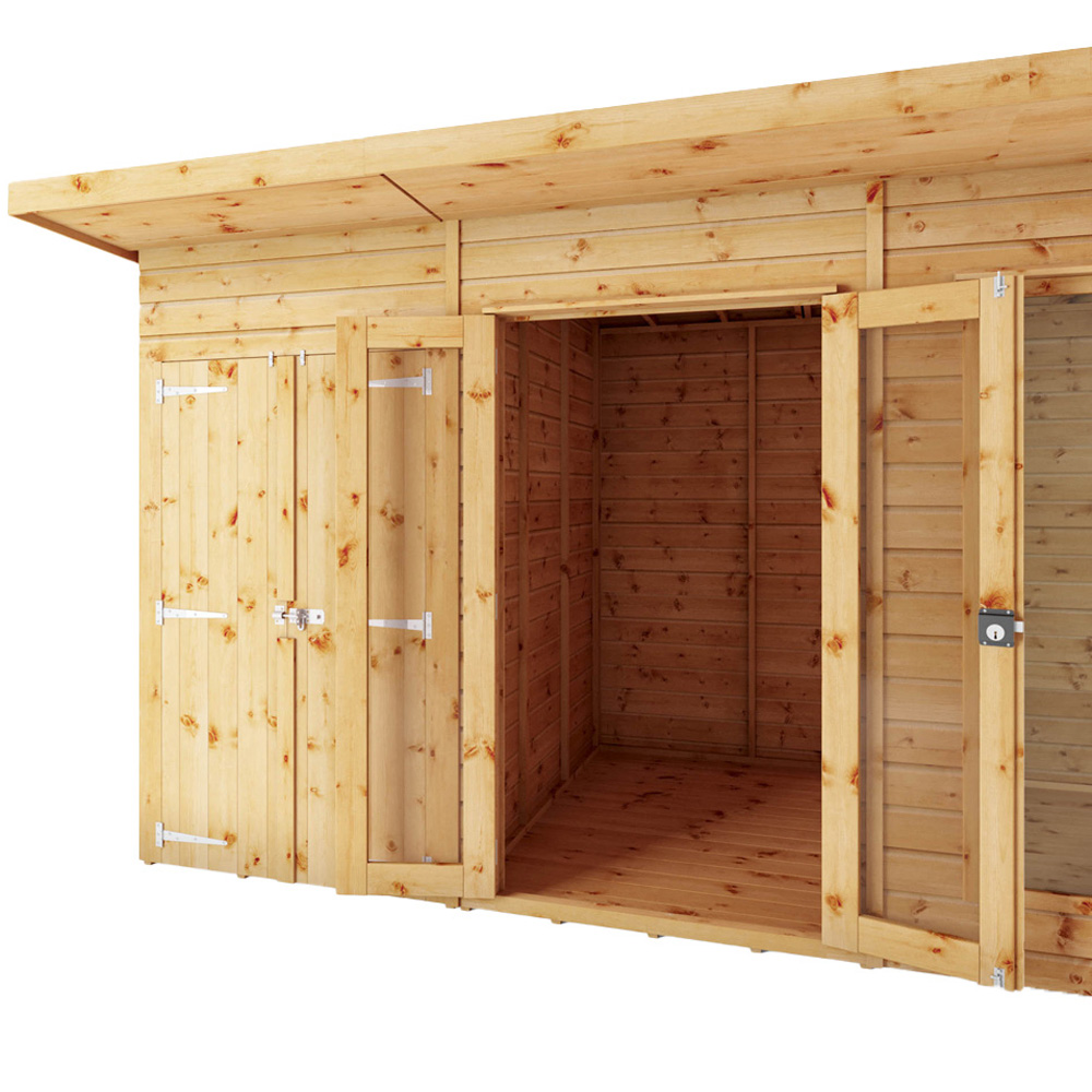 Mercia Maine 14 x 6ft Double Door Shiplap Pent Traditional Summerhouse with Side Shed