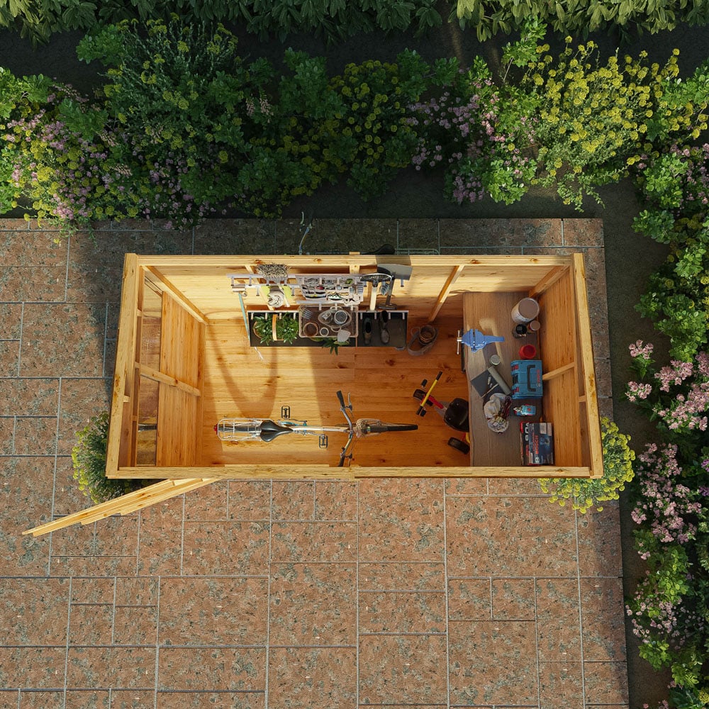 The Mercia 8 x 4 Woodsman Shiplap Pent Shed is a mid-size option from the flagship 'Woodsman' range, featuring thicker framing compared to other Shiplap sheds on the market. The Woodsman range offers a premium shed option that is expertly crafted to meet all of life’s demands. If you’re seeking the best shed from the UK’s oldest shed manufacturer, the Woodsman range is your ideal choice. Shiplap sheds are constructed using cladding made of several timber boards stacked to create a seamless panel, with grooves at the top of each board to promote water run-off, keeping the interior dry and airtight. Each of the shiplap sheds is equipped with a tongue and groove roof and floor, providing hard-wearing and robust flooring that can easily handle daily use, making it perfect for workshops or storing heavier items. The ironmongery on The Woodsman has been rigorously tested to a higher salt spray hour rating than the industry standard, ensuring superior resistance to rust and corrosion. This means your shed’s hinges, locks, and fittings can withstand the elements far longer than those found on standard garden buildings. Additionally, the Woodsman sheds feature a modular design, allowing you to position the doors and windows in any configuration that suits your garden. Whether you need the door at the end or prefer windows along one side, customisation is straightforward. Manufactured with thick 2" x 1" internal framing, Woodsman sheds are built to stand tall and strong for years to come. Thanks to the UK wide pallet network the Woodsman range has one of the fastest delivery times in the country, as quick as 2-3 business days. Anti-Rot Guarantee: All of the premium Woodsman sheds come with a 15-year anti-rot guarantee, giving you peace of mind that your investment is protected. To maintain the validity of this guarantee, it is essential to treat your new shed annually with wood treatment to prevent fungal issues and extend its lifespan.