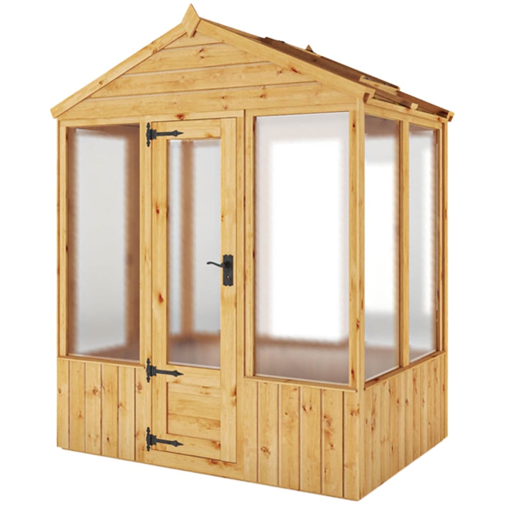 Transform your garden with the Mercia 6x4 Woodsman Apex Polycarbonate Greenhouse, a standout piece from the flagship Woodsman range. Handcrafted in the UK using sustainable and certified timber, this greenhouse combines exceptional craftsmanship with premium materials to provide a practical and stylish solution for your gardening needs. The superior polycarbonate glazing ensures optimal light transmission while offering a safe, shatterproof alternative to glass, making it ideal for any garden environment. Built with superior 2" x 2" framing, it delivers outstanding durability and structural integrity, while the watertight shiplap cladding provides excellent weather resistance and a polished finish. Adding to its charm, the antique-style ironmongery complements the rustic design, creating a timeless aesthetic. Practical features such as the opening roof vent allow for excellent ventilation and temperature control, ensuring the perfect growing conditions for your plants. For added reassurance, it comes with a 15-year anti-rot guarantee, so you can enjoy peace of mind knowing your investment is built to last. With easy-to-follow instructions included, assembling your greenhouse is straightforward, making it suitable for both novice and experienced gardeners. Whether you're nurturing seedlings or cultivating fresh vegetables, the Mercia 6x4 Woodsman Apex Polycarbonate Greenhouse provides a beautiful and functional space to help your plants thrive. And with fast UK delivery, it won’t be long before this high-quality greenhouse becomes the centrepiece of your garden.