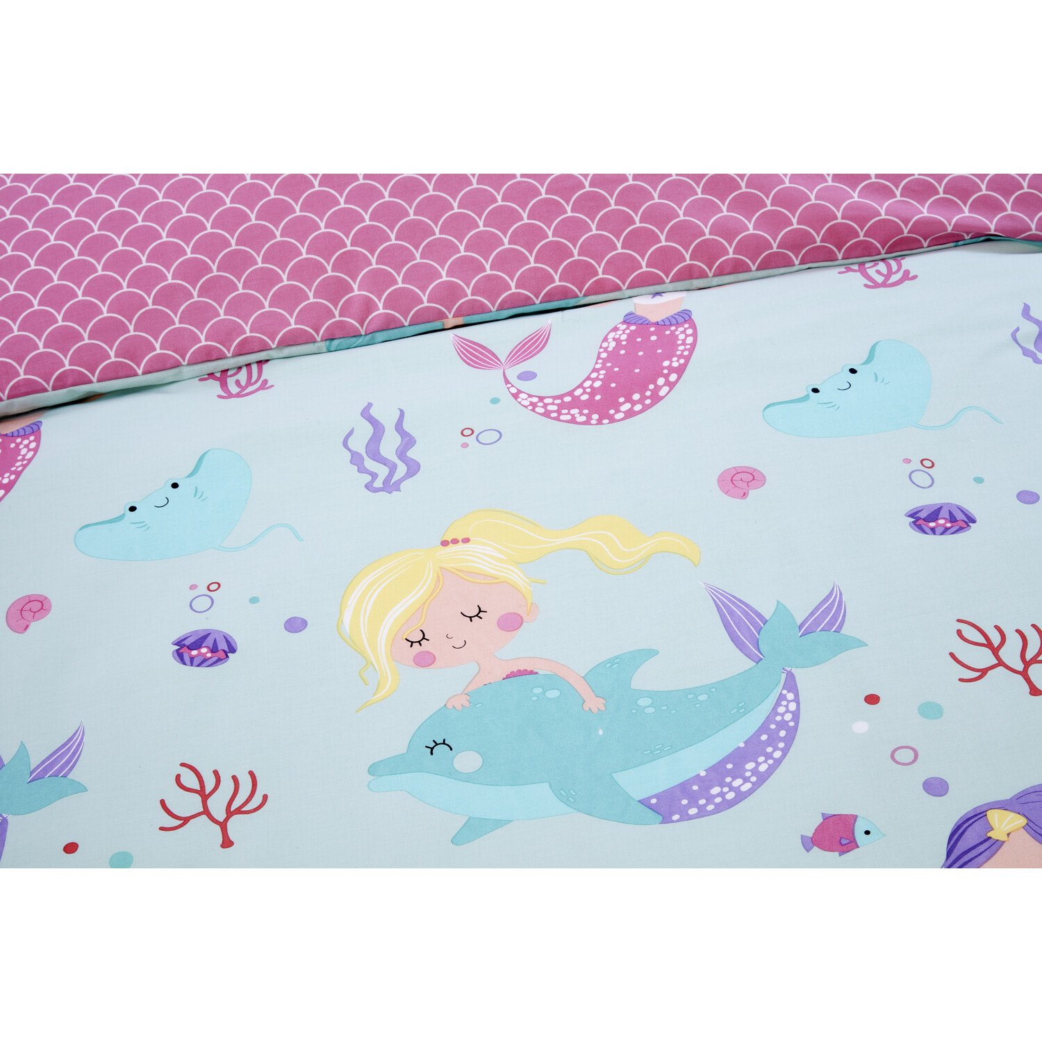 Turn your little one's room into an underwater paradise with the Mermaid Duvet Set Single. Bright and colourful, this single-bed duvet set features a reversible design along with a beautiful mermaid print to inject magic into your child's bedroom. Soft and easy to care for, it's great for creating a snug and cosy comfort space for your kid.