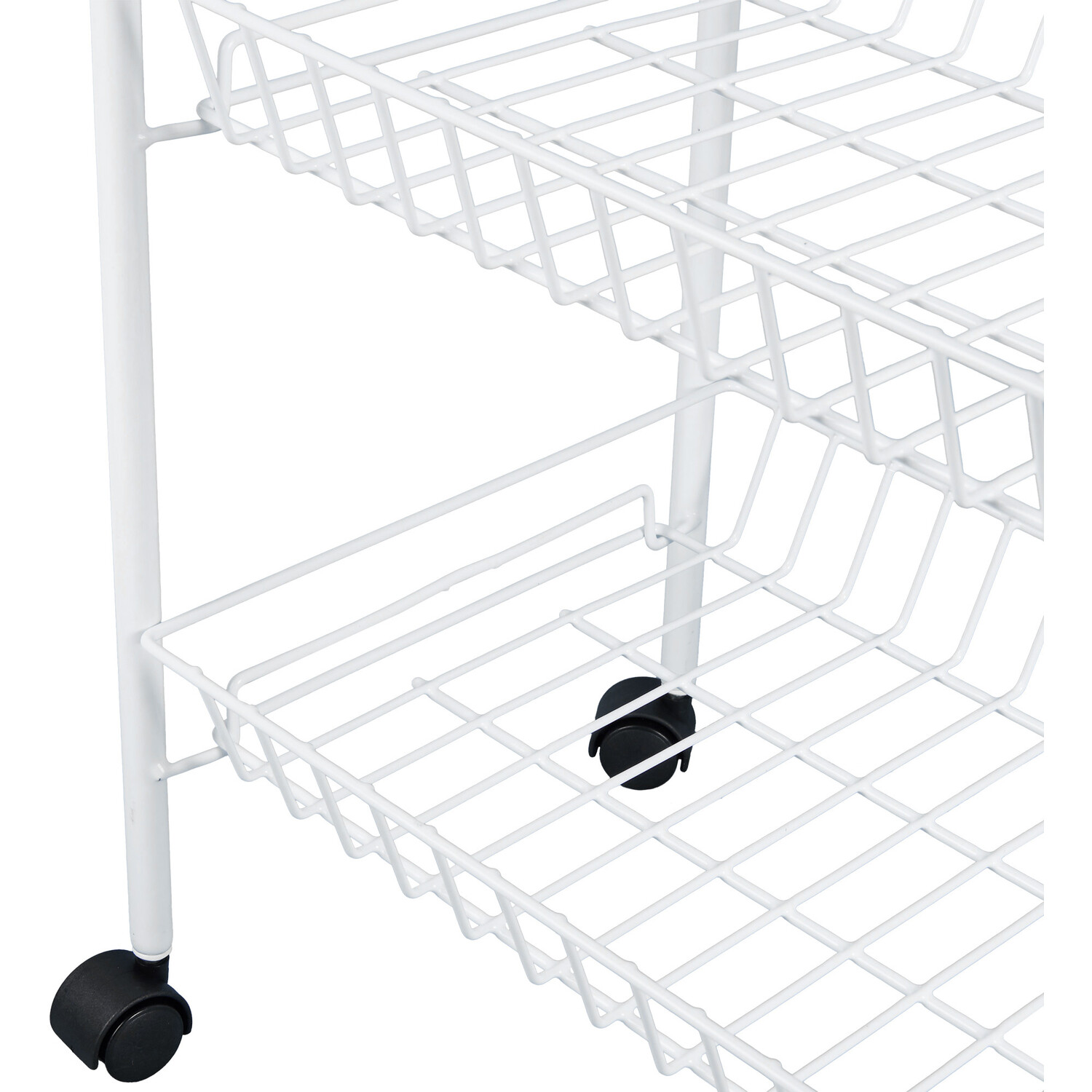 Maximise storage space with this Metal 3 Tier Storage Trolley White. Sturdy and practical, this storage trolley features three shelves and comes on wheels to easily move it anywhere. It is ideal for storing items like fruits, vegetables, jars, tins, magazines, newspapers or even clothes. Simple yet classy, the trolley is finished in an elegant white colour to blend well with any decor.