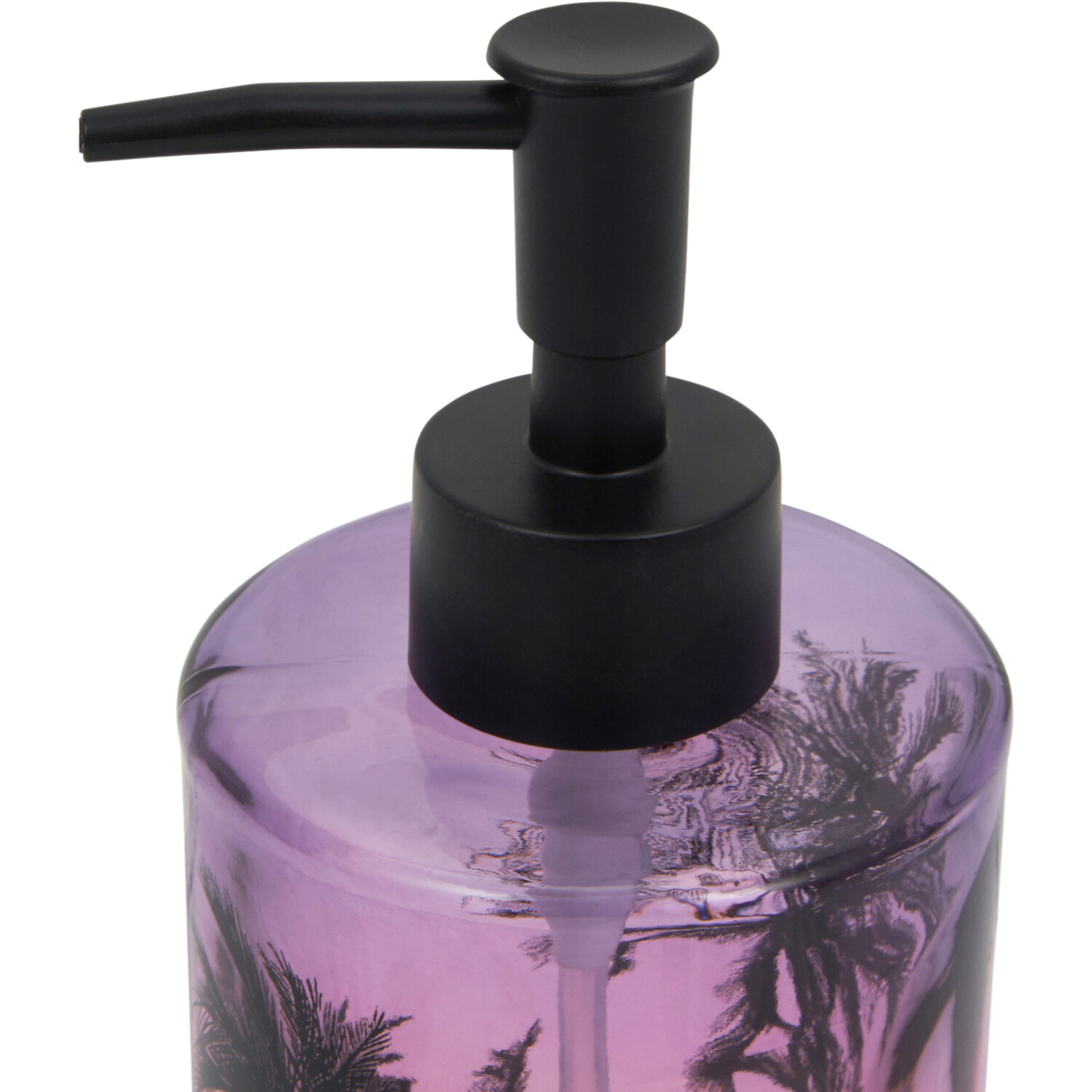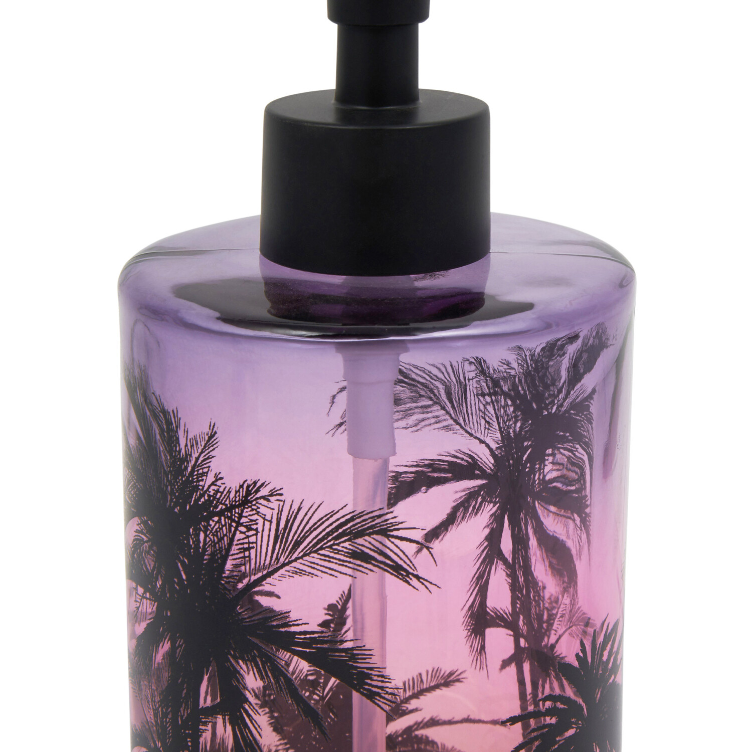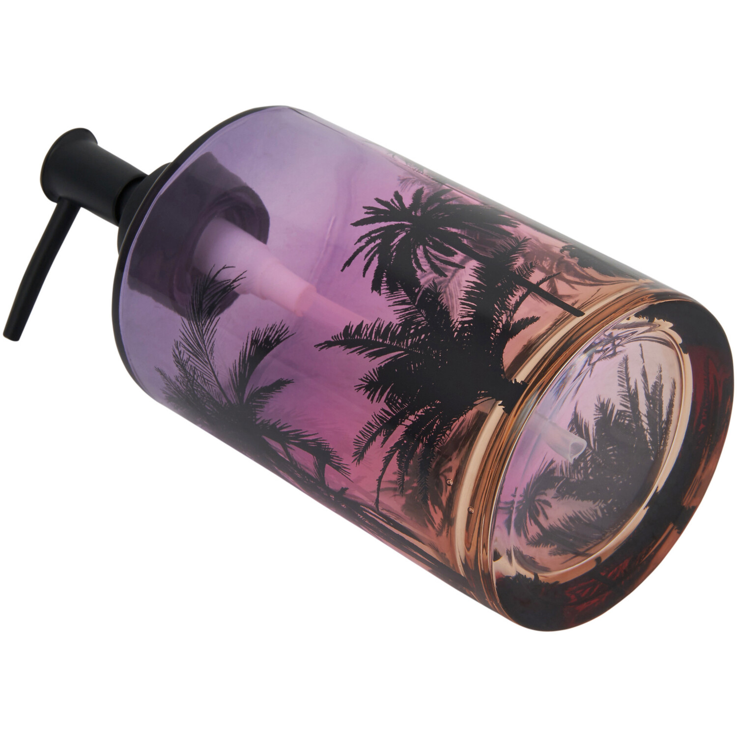 Enjoy the vibes of a delightful beach sunset with this stylish Miami Sunset Glass Soap Dispenser. Perfect for bringing some colour to your bathroom, it features a gradient of warm colours and a palm tree print with a black pump. Ideal for storing your favourite soap, the dispenser is perfect for adding a touch of style and functionality to your bathroom.