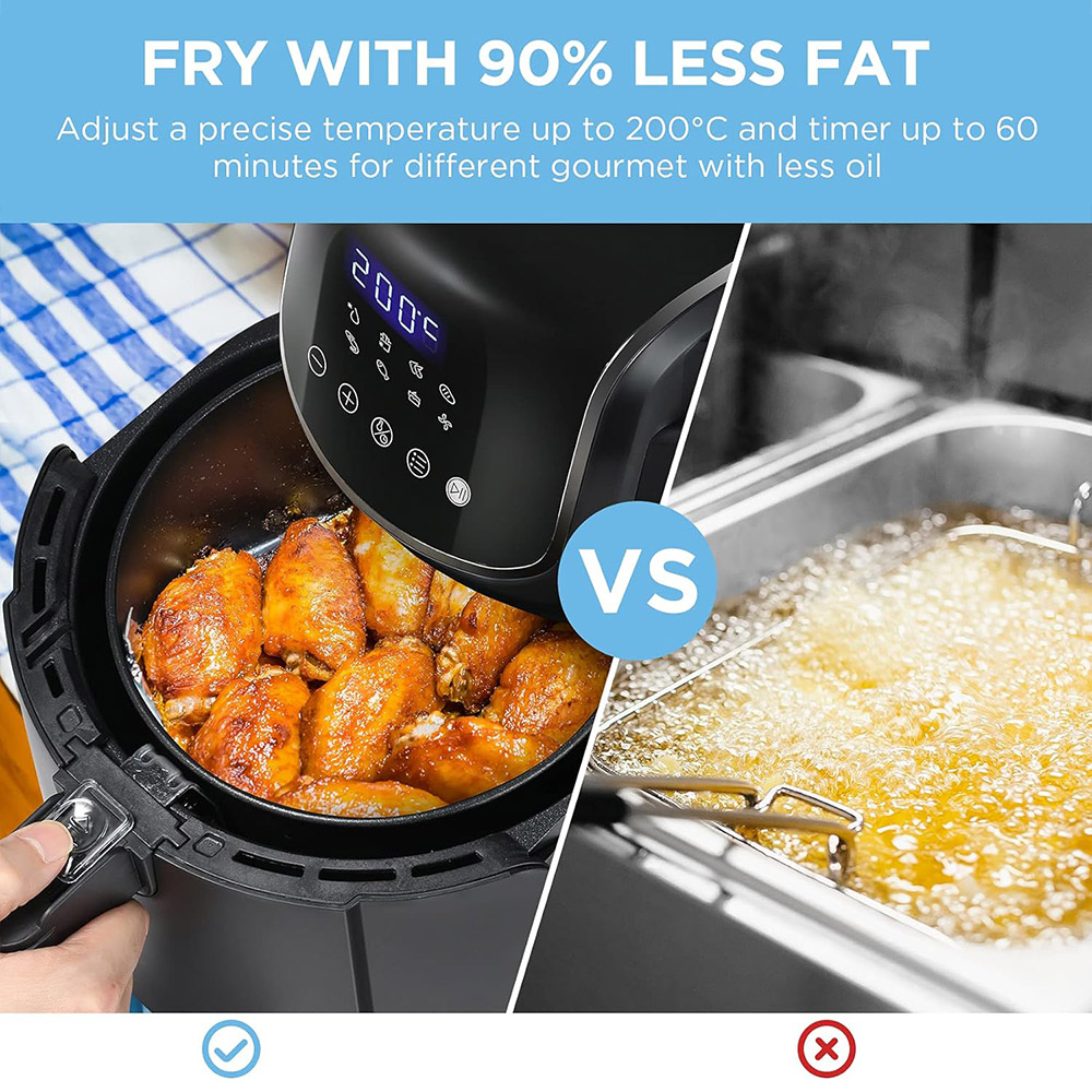 Get your meals cooked efficiently with the Midea 4L Knob Air Fryer with Display. This air fryer prepares delicious meals effortlessly without you having to turn on the stove. It features a 4L capacity, a clear display, and intuitive smart touch buttons that make it incredibly easy to operate. The fryer ensures powerful and even heating for optimal results with the 360-degree air flow heating system utilizing dual cyclone rapid hot air. It is crafted from non-stick material, perfect for heating leftovers, grilling meat, making French fries, and much more. You can enjoy healthier meals with less oil while retaining great taste.