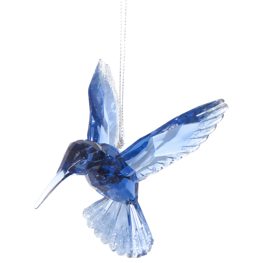Elegant and mystical in design, the Ombre Blue Hummingbird is a beautiful hanging ornament that would look beautiful on any Christmas tree. Crafted from plastic to look like glass and coloured with gorgeous navy tones, this hummingbird has been finished with glittered elements on the wings and tail feathers. Perfect for those who love a luxurious Christmas theme, this ornament comes with a silver ribbon attached so you can place it on your tree right away.