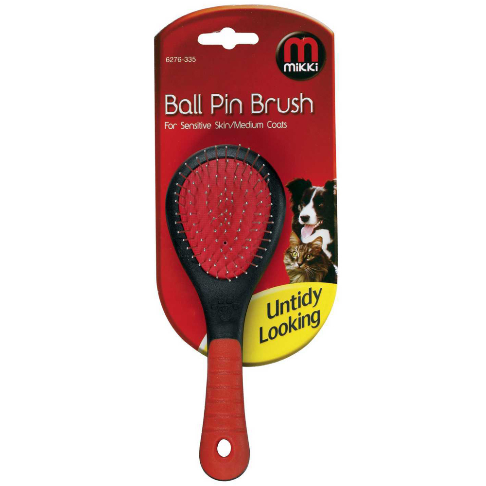 Help keep your dog's coat clean and healthy with the Mikki Ball Pin Brush. This brush uses long, round, polished pins that gently stimulate your dog's skin and removes any dead skin cells and pulls out dead, uncomfortable hairs.